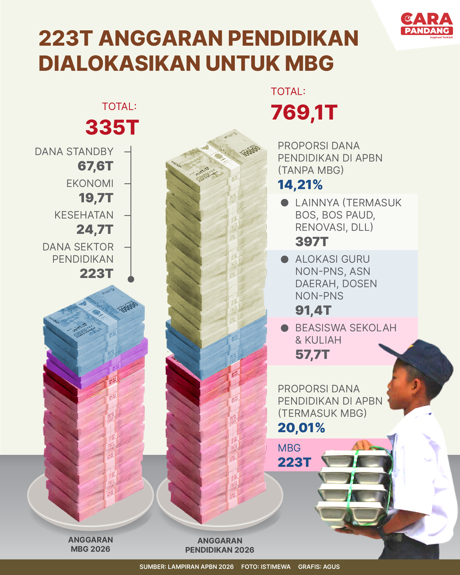 Beranda Infografis 223 T Anggaran Pendidikan Dialokasikan ke MBG Infografis 223 T Anggaran Pendidikan Dialokasikan ke MBG Penulis Amira Izzati - 02 Oktober 2025 07:18 0 223 T Anggaran Pendidikan Dialokasikan ke MBG Tags Berita Sebelumnya Catat, Tanggal Pemesanan Tiket Pesawat dan Kereta Nataru Diskon 30% Berita Berikutnya Pertamina Blokir 394 Ribu Nomor Kendaraan Langgar Aturan BBM Subsidi LEAVE A REPLY Cancel reply Comment: Please enter your comment! Name:* Please enter your name here Email:* You have entered an incorrect email address! Please enter your email address here Website: Save my name, email, and website in this browser for the next time I comment. Berita Teratas Pameran Seni Soroti Tantangan Rasial yang Masih Terjadi di AS Kemendikdasmen Bersama Institut Leimena Gelar Konferensi Internasional Literasi Keagamaan Lintas Budaya COP30 Desak Kerja Sama Selatan-Selatan untuk Majukan Tata Kelola Iklim Yandri: Koperasi Merah Putih Kata Kunci Untuk Pastikan Ekonomi Merata RUU Hukuman Mati Israel untuk 'Teroris' Disahkan di Pembacaan Pertama, Organisasi HAM: Tujuannya Warga Palestina Berita Terkait Berita Terkait Nilai Tukar Rupiah Terlemah Ketiga di ASEAN Maliq - 16 November 2025 15:49 10 Tokoh Ditetapkan sebagai Pahlawan Nasional Maliq - 11 November 2025 10:18 Ignatius Jonan Menuju Menhub? Maliq - 07 November 2025 14:02 Hasil Sidang MKD DPR RI Maliq - 06 November 2025 11:34