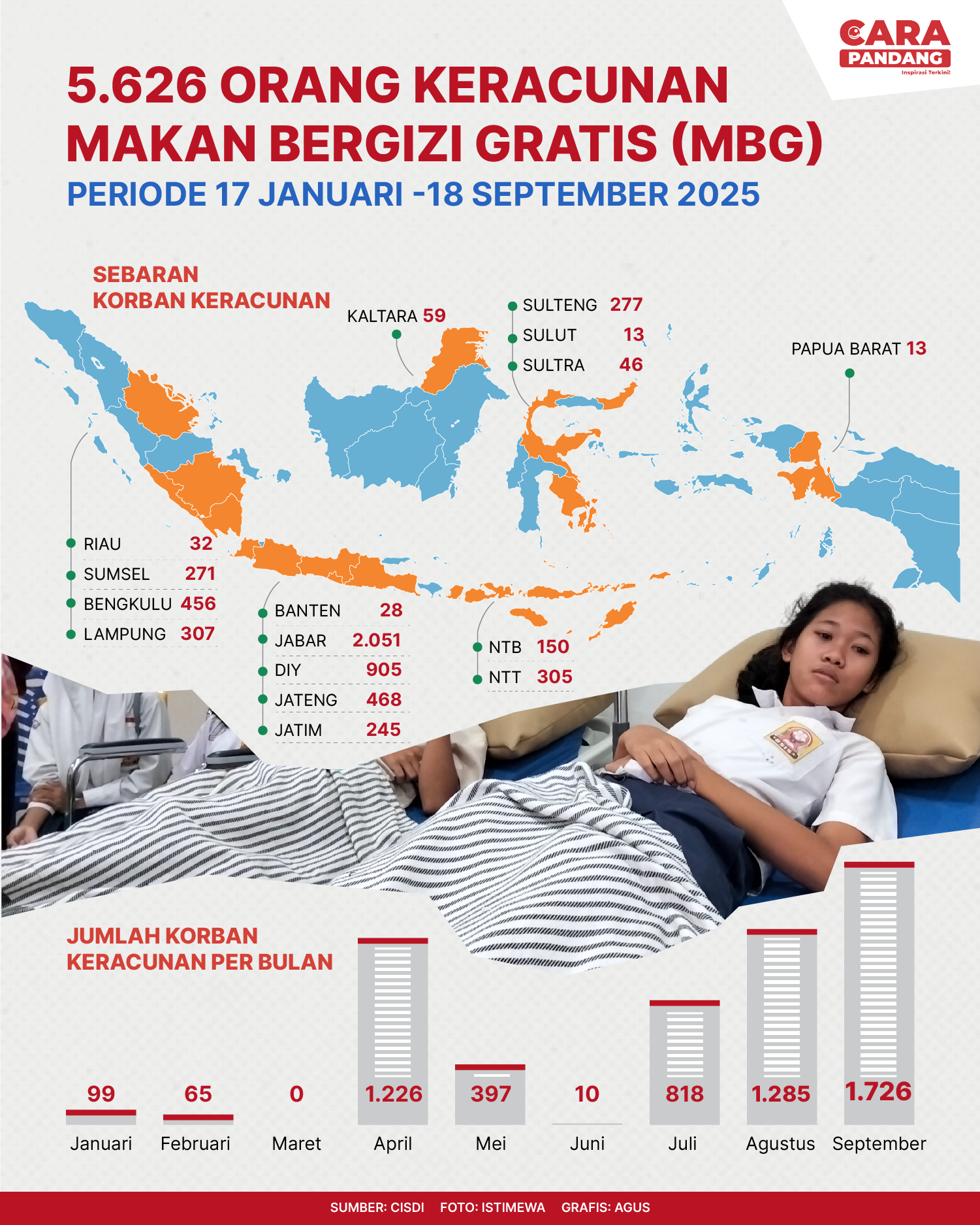 Beranda Infografis 5.626 Orang Keracunan MBG Infografis 5.626 Orang Keracunan MBG Penulis Amira Izzati - 26 September 2025 09:28 0 5.626 Orang Keracunan MBG Tags Berita Sebelumnya Kemendikdasmen Luncurkan Panduan STEM Berita Berikutnya Dubes Palestina: 80 Persen Gaza Hancur, Sejuta Warga Tinggal di Tenda LEAVE A REPLY Cancel reply Comment: Please enter your comment! Name:* Please enter your name here Email:* You have entered an incorrect email address! Please enter your email address here Website: Save my name, email, and website in this browser for the next time I comment. Berita Teratas Kemendikdasmen Bersama Institut Leimena Gelar Konferensi Internasional Literasi Keagamaan Lintas Budaya COP30 Desak Kerja Sama Selatan-Selatan untuk Majukan Tata Kelola Iklim Yandri: Koperasi Merah Putih Kata Kunci Untuk Pastikan Ekonomi Merata BPOM Resmi Setuju Pelaksanaan Uji Klinis Vaksin TBC Inhalasi Yusril: Larangan Polisi Duduki Jabatan Sipil Masukan Komisi Reformasi Berita Terkait Berita Terkait Nilai Tukar Rupiah Terlemah Ketiga di ASEAN Maliq - 16 November 2025 15:49 10 Tokoh Ditetapkan sebagai Pahlawan Nasional Maliq - 11 November 2025 10:18 Ignatius Jonan Menuju Menhub? Maliq - 07 November 2025 14:02 Hasil Sidang MKD DPR RI Maliq - 06 November 2025 11:34