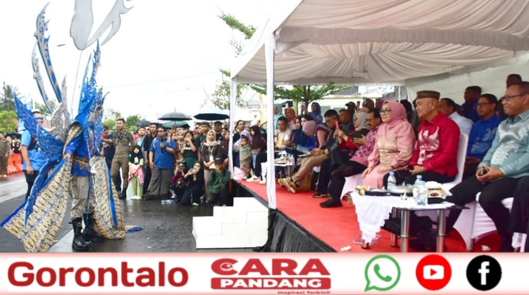 POHUWATO, CARAPANDANG - Gelaran Gorontalo Karnaval Karawo 2025 dengan tema “The Thread of Nusantara’s Heritage” berlangsung meriah di depan Grand Palace Convention Center, Kota Gorontalo, Sabtu (27/09/2025).