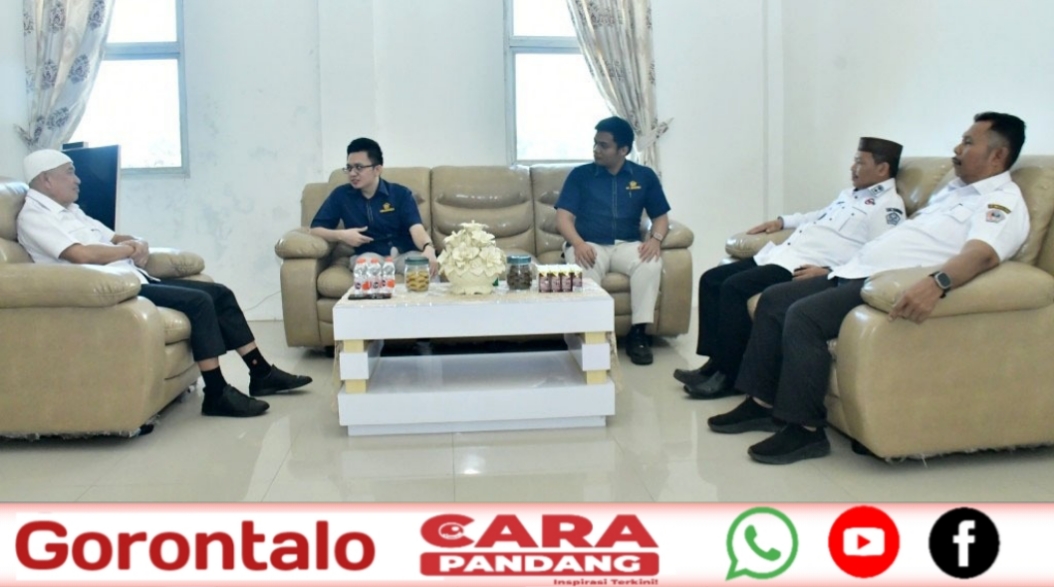 POHUWATO, CARAPANDANG - Bupati Pohuwato, Saipul A. Mbuinga, didampingi Kepala Dinas Penanaman Modal dan PTSP, Yunus Mohamad, serta Kepala Dinas Perindagkop dan UKM, Ibrahim Kiraman, menerima kunjungan silaturahmi Kepala Kantor Pajak Pratama Marisa yang baru, Faisal, Rabu (29/04/2026), di ruang kerja bupati.