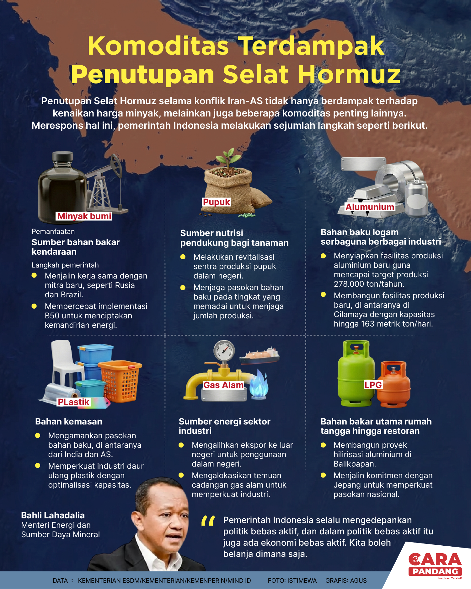 Beranda Infografis Komoditas Terdampak Penutupan Selat Hormuz Infografis Komoditas Terdampak Penutupan Selat Hormuz Penulis Amira Izzati - 24 April 2026 19:09 0 Komoditas Terdampak Penutupan Selat Hormuz Tags Berita Sebelumnya RI Peringkat Dua Negara Tahan Guncangan Energi Global Versi JP Morgan Berita Berikutnya Akan Datang: Ponsel Realme C100 Akan Masuk ke Pasar Indonesia, Sasar Kaum Muda LEAVE A REPLY Cancel reply Comment: Please enter your comment! Name:* Please enter your name here Email:* You have entered an incorrect email address! Please enter your email address here Website: Save my name, email, and website in this browser for the next time I comment. Berita Teratas BGN Anggarkan Tablet Hingga Semir Sepatu, Ini Komentar ICW dan Respon KPK Tips Keren Menjadi Orang Tua yang Menghargai dan Dicintai Anak 2025-2026 Tahun Kelam Real Madrid, Trofi La Liga jadi Harga Mati 5 Cara Belajar Hidup: Tenang Bergelimang Harta di Usia Tua dari Haji Bolot, yang Terakhir Bikin Tertegun 4 Tips Memotong Kuku Kucing agar Aman dan Tidak Luka Berita Terkait Berita Terkait Menilik Isi UU Perlindungan Pekerja Rumah Tangga Zoel Rachman - 24 April 2026 09:47 Kolaborasi Tingkatkan Kemampuan Literasi dan Numerasi Siswa Zoel Rachman - 16 April 2026 11:26 Program Bug Bounty 2026, Perkuat Ketahanan Siber Pendidikan Indonesia Maliq - 15 April 2026 21:44 Rapor Biru Kinerja Kabinet Merah Putih Maliq - 15 April 2026 14:46