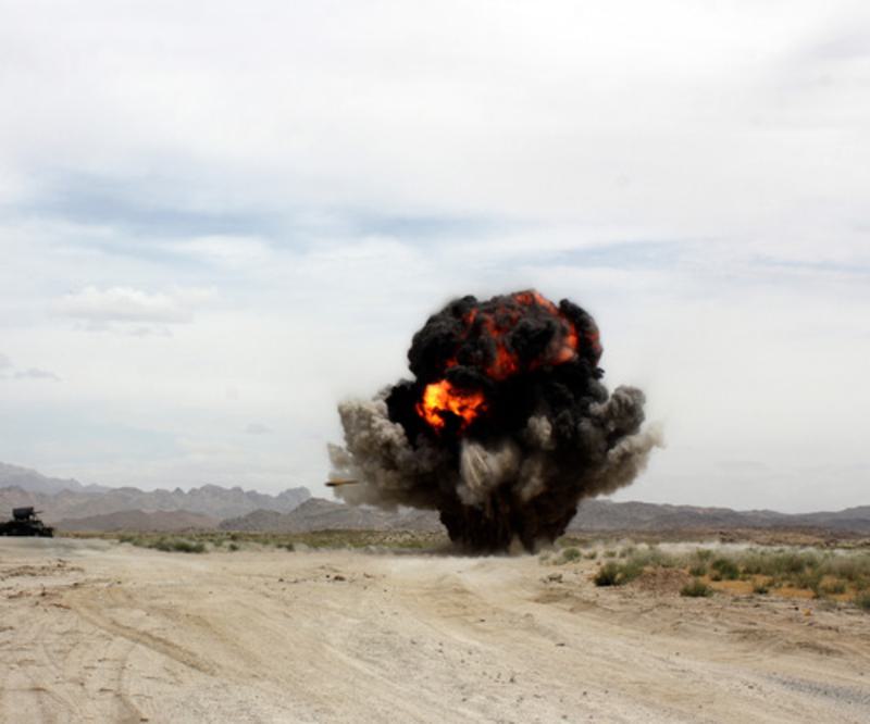 Foto yang diabadikan pada 22 Mei 2019 menunjukkan asap membubung setelah upaya penjinakan ranjau darat dalam operasi militer melawan milisi Taliban di Distrik Shahwalikot, Provinsi Kandahar, Afghanistan. (Xinhua/Sanaullah Seiam)