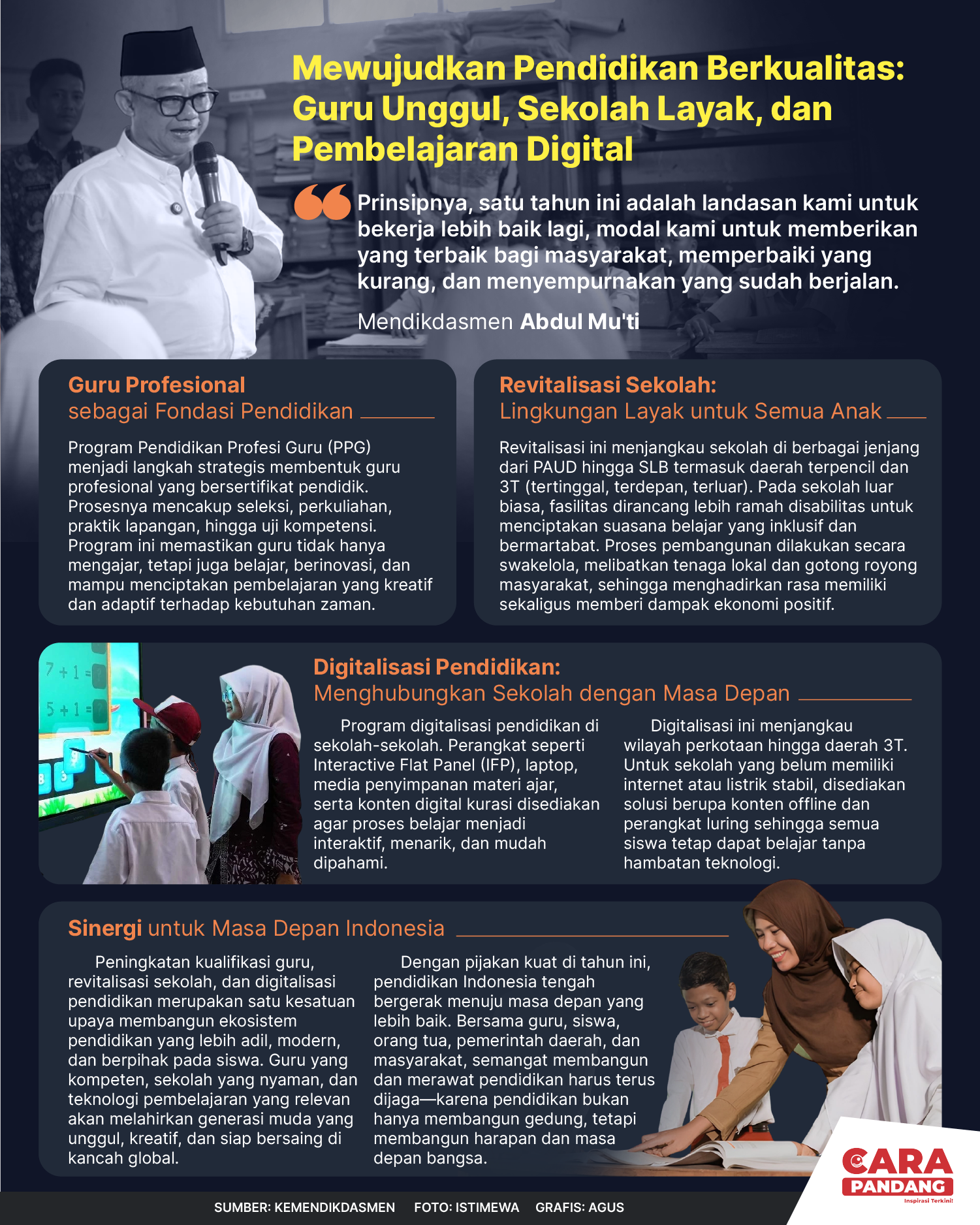 Beranda Infografis Mewujudkan Pendidikan Berkualitas Infografis Mewujudkan Pendidikan Berkualitas Penulis Amira Izzati - 24 Oktober 2025 07:38 0 Mewujudkan Pendidikan Berkualitas Tags Berita Sebelumnya Siap Nyapres di Usia 80 Tahun, Presiden Brasil: Energi Saya Masih Usia 30 Tahun Berita Berikutnya Rupiah Diprediksi Menguat Jelang Pertemuan China-AS LEAVE A REPLY Cancel reply Comment: Please enter your comment! Name:* Please enter your name here Email:* You have entered an incorrect email address! Please enter your email address here Website: Save my name, email, and website in this browser for the next time I comment. Berita Teratas Pakar Ungkap Keterbatasan AI dalam Melawan Hoaks Prabowo: Rp13 Triliun Bisa untuk 8.000 Sekolah dan 600 Kampung Nelayan Puluhan WNI Pekerja Scam Kamboja Terlibat Pemberontakan, KBRI Turun Tangan Uang Negara Kembali, Prabowo: Ini Tanda Baik Satu Tahun Pemerintahan Pesan Prabowo Untuk Kejagung Dan Polri: Jangan Mengkriminalisasi Rakyat Kecil Berita Terkait Berita Terkait Muhammadiyah Masuk Dalam 10 Organisasi Agama Terkaya di Dunia Maliq - 24 Oktober 2025 11:12 Whoosh, Duri dalam Daging Keuangan Maliq - 15 Oktober 2025 20:08 Akhir Kisah Kementerian BUMN Maliq - 13 Oktober 2025 12:48 Mengenal Sekolah Garuda untuk Siswa Berprestasi Maliq - 11 Oktober 2025 10:31