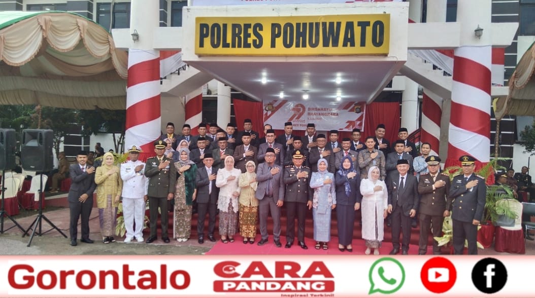 Upacara tersebut dipimpin langsung oleh Kapolres Pohuwato, AKBP Hi Busroni, S.I.K., M.H., dan turut dihadiri unsur Forum Koordinasi Pimpinan Daerah (Forkopimda), pejabat utama Polres, jajaran TNI, tokoh masyarakat, tokoh agama, Bhayangkari, serta perwakilan organisasi masyarakat.