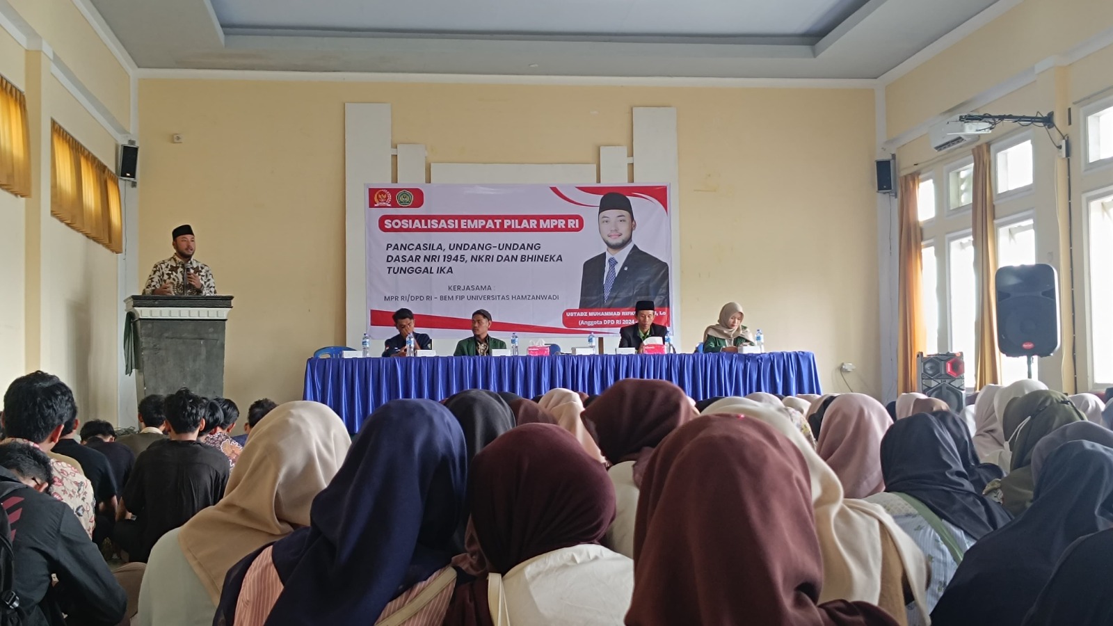 Demikian disampaikan oleh Anggota DPD RI, H. Muhammad Rifki Farabi pada kegiatan Sosialiasi 4 Pilar MPR RI di Aula Fakultas Teknik Universitas Hamzanwadi, Kamis, 11 September 2025.