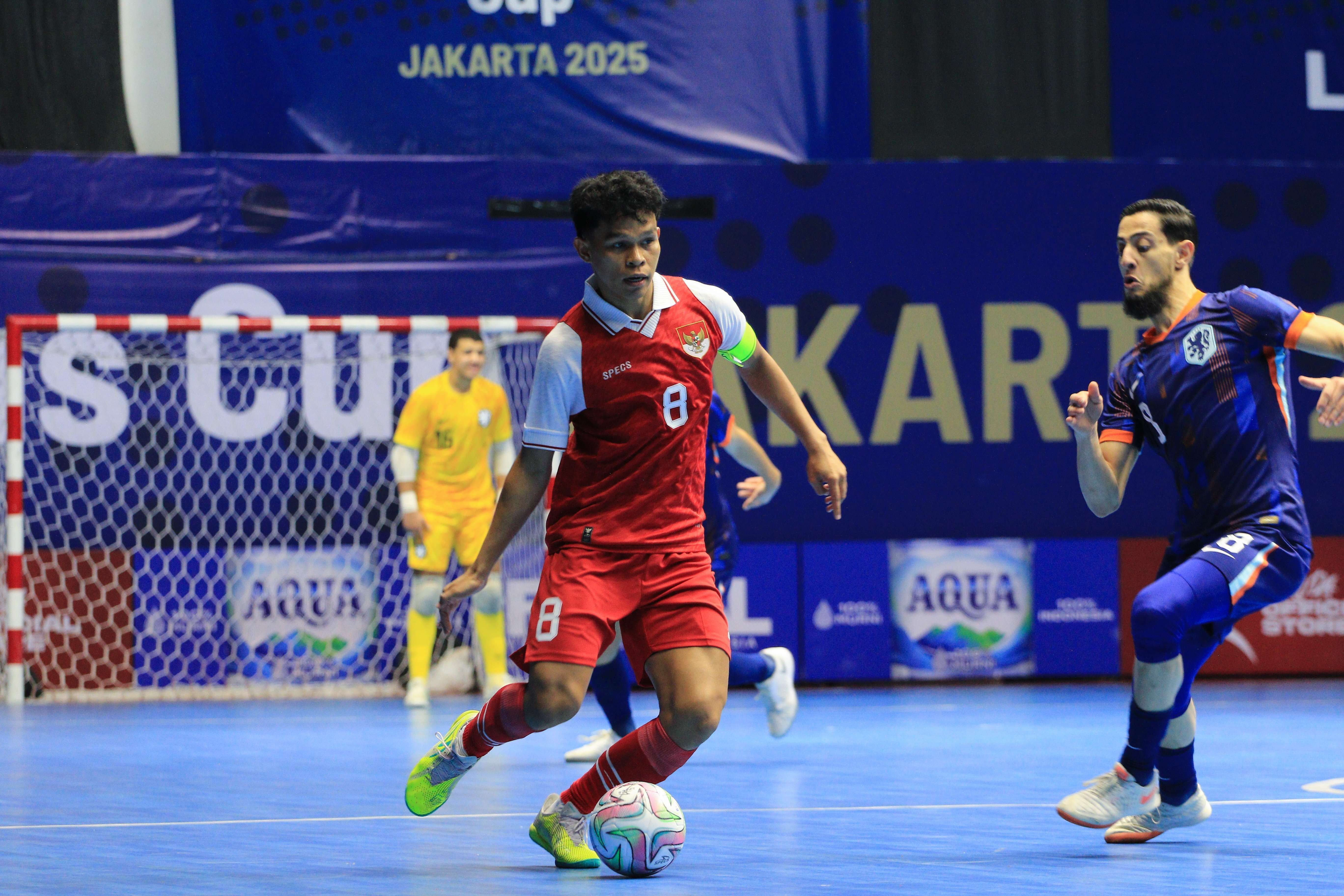 CARAPANDANG - Timnas Futsal Indonesia sukses mengalahkan Belanda 5-1. Kemenangan telak ini diraih dalam Aqua Futsal Four Nations Cup 2025 yang digelar di GBK Basket Hall Senayan, Jakarta, Sabtu (20/9/2025).