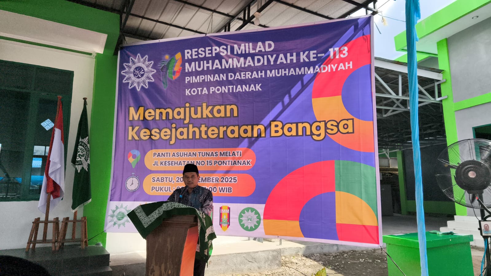 CARAPANDANG - Pimpinan Daerah Muhammadiyah (PDM) Kota Pontianak menggelar Resepsi Milad 113 Muhammadiyah di Al Maun Center Panti Asuhan Tunas Melati,  Pontianak, Sabtu 20 Desember 2025.