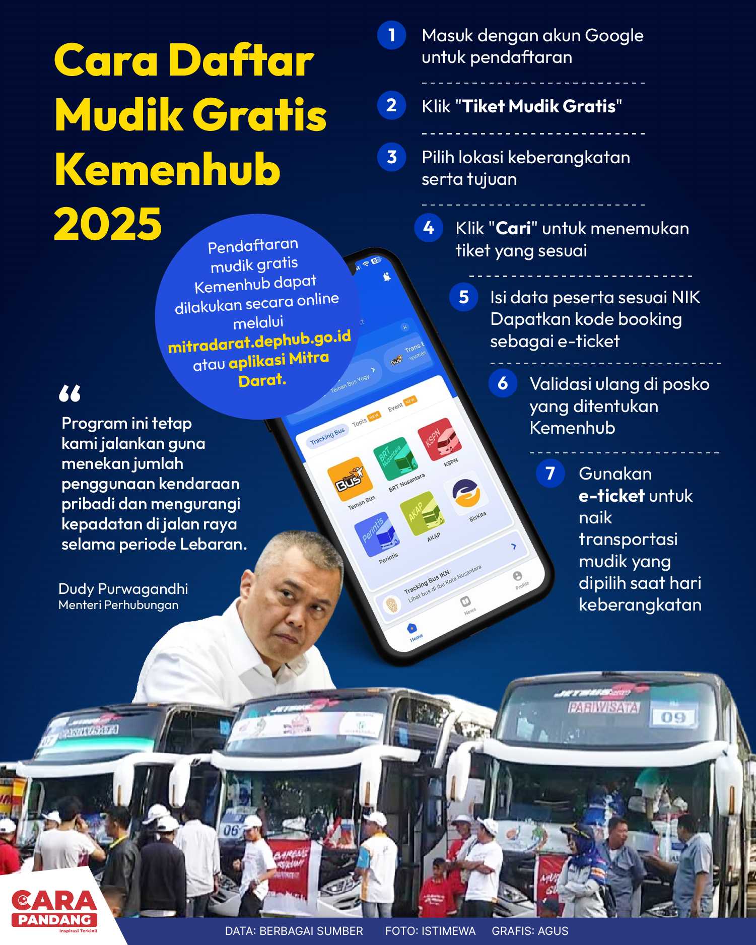 Beranda Infografis Cara Daftar Mudik Gratis Kemenhub 2025 Infografis Cara Daftar Mudik Gratis Kemenhub 2025 Penulis Amira Izzati - 08 Maret 2025 19:15 0 CARAPANDANG - Cara Daftar Mudik Gratis Kemenhub 2025 Tags Berita Sebelumnya Cocok Dikonsumsi Saat Berbuka Puasa, Buah Blewah Baik Untuk Kesehatan Berita Berikutnya Wagub Sumbar Dampingi Ketua MPR RI Tinjau Korban Banjir di Kecamatan Nanggalo, Kota Padang LEAVE A REPLY Cancel reply Comment: Please enter your comment! Name:* Please enter your name here Email:* You have entered an incorrect email address! Please enter your email address here Website: Save my name, email, and website in this browser for the next time I comment. Berita Teratas Diet Pembatasan Kalori Bantu Otak dan Usus Batasi Asupan Makanan Menikmati Pesona Musim Gugur Hutan Belgrad di Istanbul, Turkiye Kanada Bidik Perluasan Kerja Sama Agrifood Dengan Indonesia UE Denda Platform X 120 Juta Euro dalam Putusan Pertama Pelanggaran DSA Tiba di Aceh, Presiden Prabowo Lanjutkan Perjalanan ke Bireuen Berita Terkait Berita Terkait Distribusi Bantuan Banjir Sumatra Lewat Udara Maliq - 06 Desember 2025 14:16 Dampak Banjir Aceh, Sumut dan Sumbar Zoel Rachman - 05 Desember 2025 08:47 Daftar Dosa Korupsi Netanyahu Zoel Rachman - 04 Desember 2025 12:52 Kutipan Pidato Hari Guru Nasional 2025 Maliq - 28 November 2025 12:12