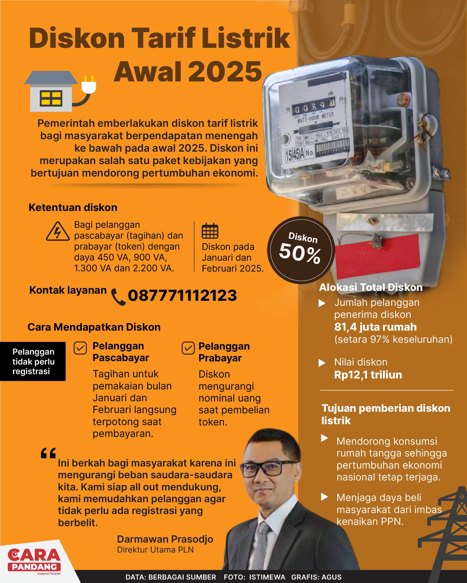 Beranda Infografis Diskon Tarif Listrik Awal 2025 Infografis Diskon Tarif Listrik Awal 2025 Diskon Tarif Listrik Awal 2025 Penulis Zoel Rachman - 19 Desember 2024 06:16 0 CARAPANDANG.COM - Diskon Tarif Listrik Awal 2025. Tags Diskon Listrik 2025 Berita Sebelumnya LIverpool ke Semifinal Piala Liga Bersama Arsenal dan Newcastle Berita Berikutnya Wagub Sumbar Dampingi Ketua MPR RI Tinjau Korban Banjir di Kecamatan Nanggalo, Kota Padang LEAVE A REPLY Cancel reply Comment: Please enter your comment! Name:* Please enter your name here Email:* You have entered an incorrect email address! Please enter your email address here Website: Save my name, email, and website in this browser for the next time I comment. Berita Teratas Diet Pembatasan Kalori Bantu Otak dan Usus Batasi Asupan Makanan Menikmati Pesona Musim Gugur Hutan Belgrad di Istanbul, Turkiye Kanada Bidik Perluasan Kerja Sama Agrifood Dengan Indonesia UE Denda Platform X 120 Juta Euro dalam Putusan Pertama Pelanggaran DSA Tiba di Aceh, Presiden Prabowo Lanjutkan Perjalanan ke Bireuen Berita Terkait Berita Terkait Distribusi Bantuan Banjir Sumatra Lewat Udara Maliq - 06 Desember 2025 14:16 Dampak Banjir Aceh, Sumut dan Sumbar Zoel Rachman - 05 Desember 2025 08:47 Daftar Dosa Korupsi Netanyahu Zoel Rachman - 04 Desember 2025 12:52 Kutipan Pidato Hari Guru Nasional 2025 Maliq - 28 November 2025 12:12