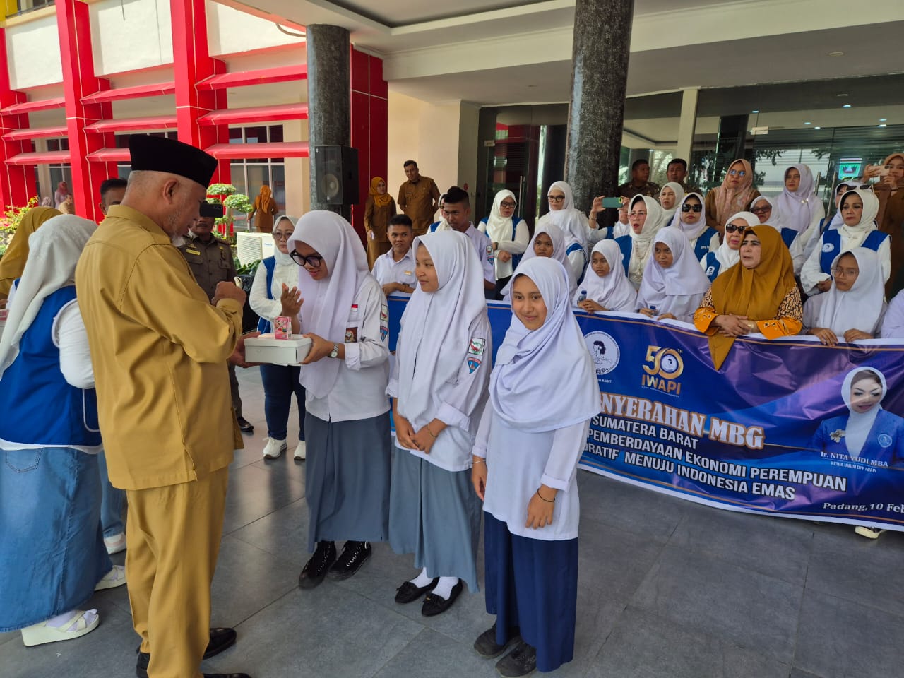 "Alhamdulillah atas suport dari IWAPI, hari ini kita bisa membagikan sebanyak 2.307 box MBG untuk  siswa-siswi SMK Dhuafa dan Madrasah Tarbiyah Islamiyah Batang Kabung," ujar Gubernur Mahyeldi.