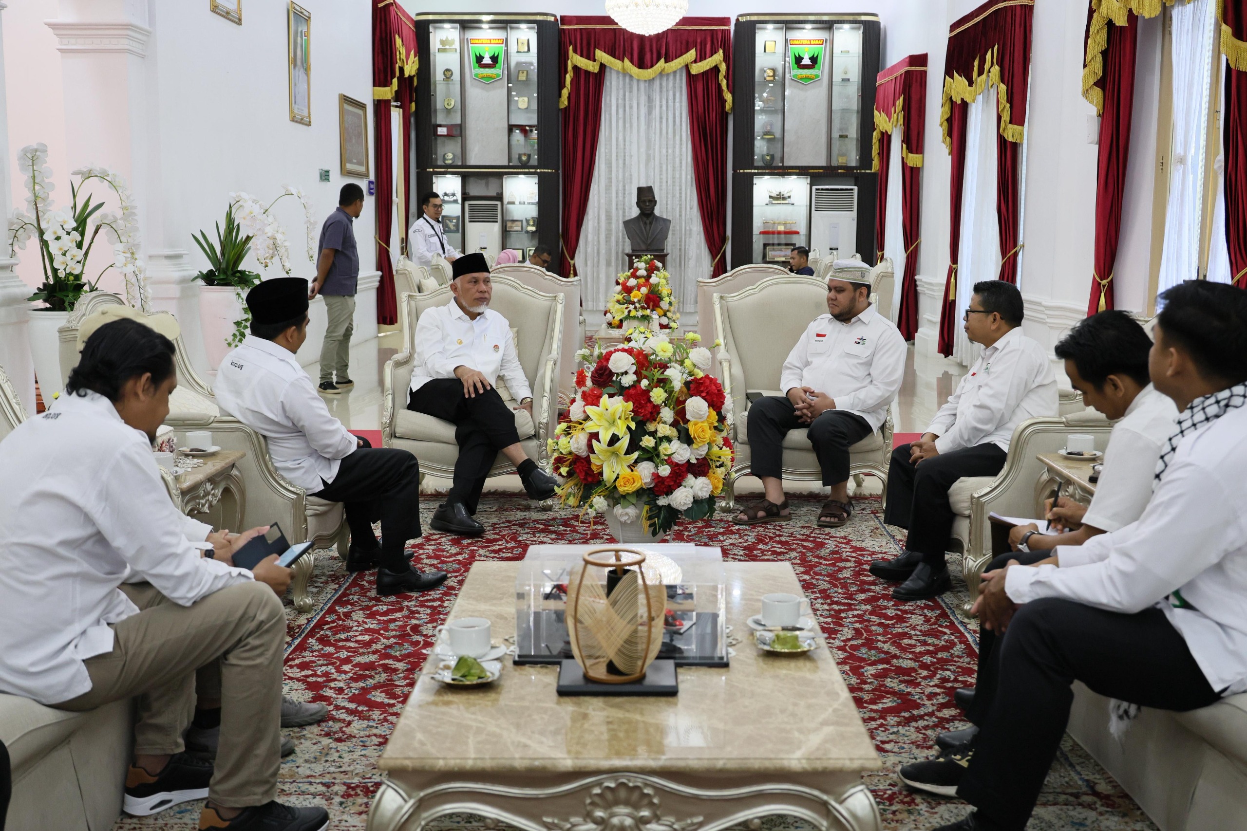 SUMBAR, CARAPANDANG - Gubernur Sumatera Barat (Sumbar), Mahyeldi Ansharullah melepas keberangkatan relawan Komite Nasional untuk Rakyat Palestina (KNRP) Sumbar yang membawa bantuan kemanusiaan senilai Rp1.370.766.600 untuk rakyat Palestina di Istana Gubernuran, Rabu (28/5/2025).
