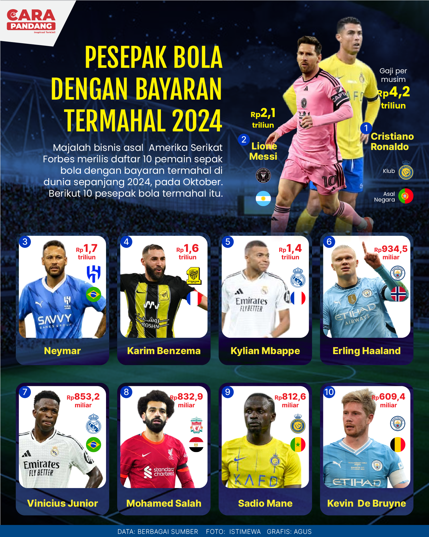 Beranda Infografis Pesepakbola dengan Bayaran Termahal 2024 Infografis Pesepakbola dengan Bayaran Termahal 2024 Penulis Amira Izzati - 28 Desember 2024 08:57 0 CARAPANDANG - Pesepakbola dengan Bayaran Termahal 2024 Tags Berita Sebelumnya Pemprov Sumbar Sambut Kepulangan Tim Persikopa Berita Berikutnya Banjir Tapteng Ganggu Kegiatan Belajar Siswa LEAVE A REPLY Cancel reply Comment: Please enter your comment! Name:* Please enter your name here Email:* You have entered an incorrect email address! Please enter your email address here Website: Save my name, email, and website in this browser for the next time I comment. Berita Teratas TikTok dan WhatsApp Dominasi Penggunaan Media Sosial di Indonesia Studi Ungkap Penguin Afrika Hadapi Kelaparan Massal Marvel Kembalikan ‘Endgame’ ke Layar Lebar Jelang Rilis ‘Doomsday’ Dante Saksono: Kesehatan Mental Harus Jadi Prioritas Sistem Kesehatan Nasional Ariel Noah Diam-diam Kirim Bantuan untuk Korban Banjir di Aceh Berita Terkait Berita Terkait Distribusi Bantuan Banjir Sumatra Lewat Udara Maliq - 06 Desember 2025 14:16 Dampak Banjir Aceh, Sumut dan Sumbar Zoel Rachman - 05 Desember 2025 08:47 Daftar Dosa Korupsi Netanyahu Zoel Rachman - 04 Desember 2025 12:52 Kutipan Pidato Hari Guru Nasional 2025 Maliq - 28 November 2025 12:12