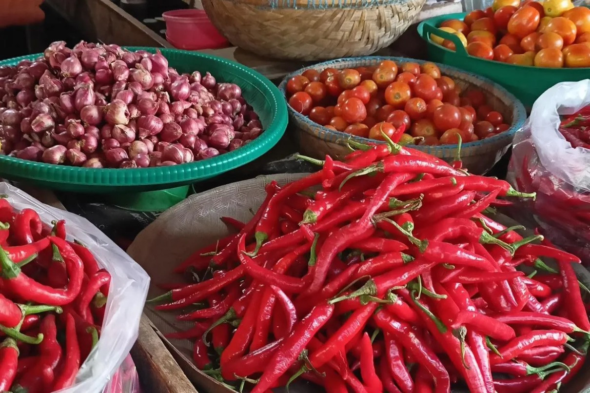 Pusat Informasi Harga Pangan Strategis (PIHPS) Nasional yang dikelola Bank Indonesia mencatat harga pangan komoditas bawang merah mencapai Rp37.900 per kilogram (kg), sedangkan cabai rawit merah Rp24.600 per kg.