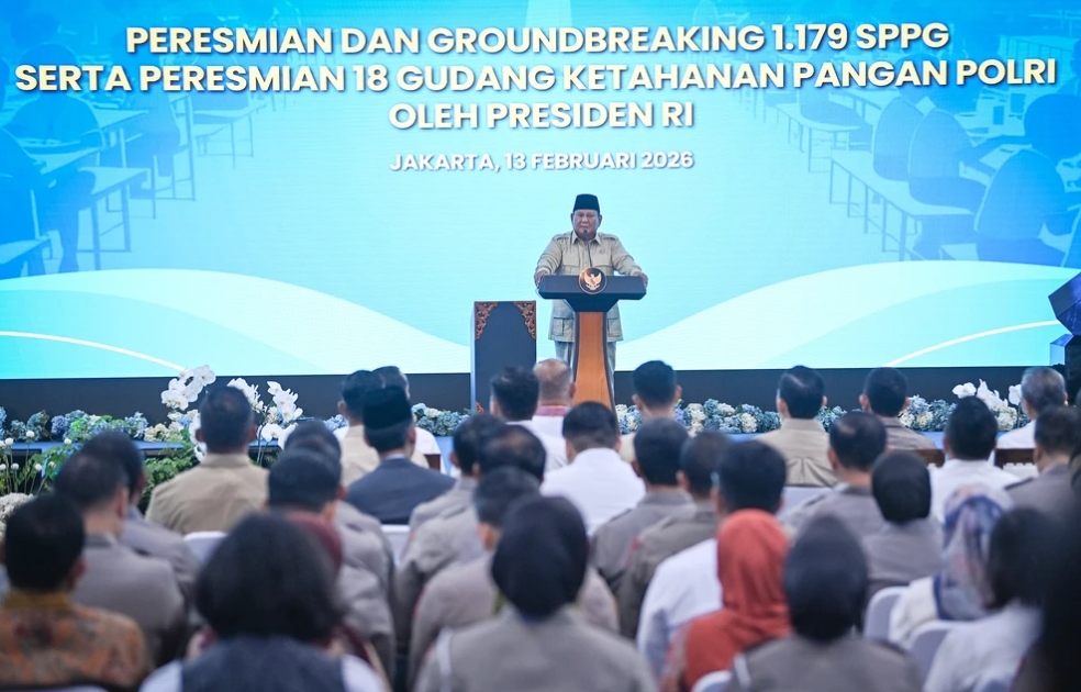 Pernyataan tersebut disampaikan Presiden saat meresmikan 1.179 Satuan Pelayanan Pemenuhan Gizi (SPPG) dan 18 Gudang Ketahanan Pangan milik Polri di SPPG Palmerah, Polres Jakarta Barat, Jumat (13/2/2026).