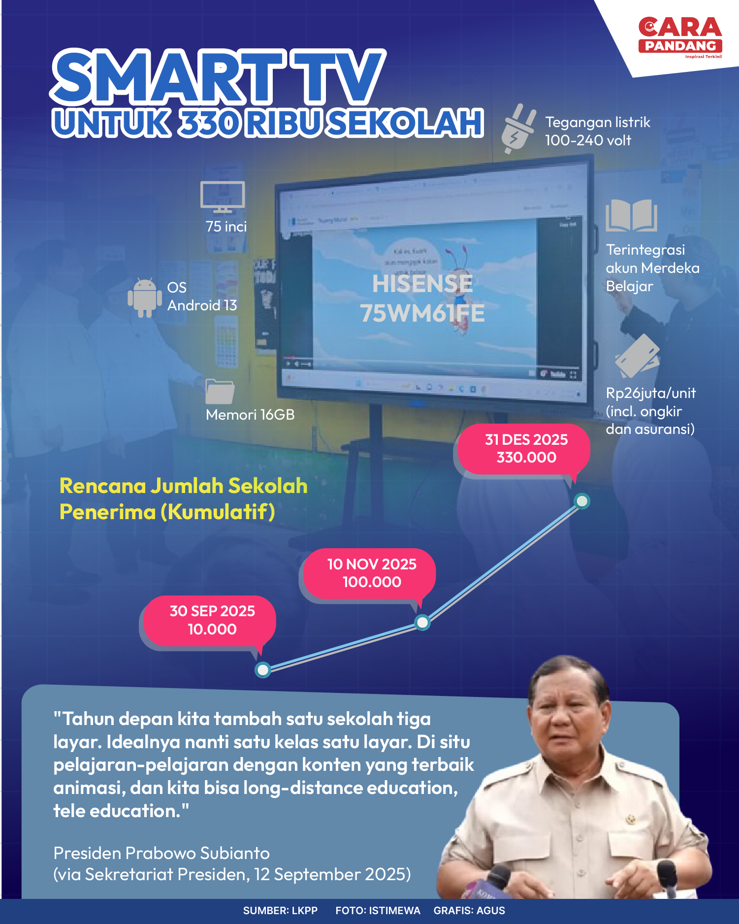 Beranda Infografis SmartTV untuk 330 Ribu Sekolah Infografis SmartTV untuk 330 Ribu Sekolah Penulis Amira Izzati - 03 Oktober 2025 08:08 0 SmartTV untuk 330 Ribu Sekolah Tags Berita Sebelumnya Prabowo Hadiri Presidential Inspection di KRI dr. Radjiman Wedyodiningrat (RJW-992) Berita Berikutnya Vidi Aldiano Hiatus dari Dunia Hiburan LEAVE A REPLY Cancel reply Comment: Please enter your comment! Name:* Please enter your name here Email:* You have entered an incorrect email address! Please enter your email address here Website: Save my name, email, and website in this browser for the next time I comment. Berita Teratas Perlahan Prabowo Lepas dari Bayang-bayang Jokowi Kereta Api di Daop 7 Ikut Terdampak Akibat Banjir di Semarang Korut Uji Coba Rudal Jelajah Jelang Kunjungan Trump ke Korsel Purbaya Ancam Pelaku Import Pakaian Bekas Ilegal Mensos: Generasi Muda Indonesia Jangan Takut Bermimpi Besar Berita Terkait Berita Terkait Jadwal Indonesia di Piala Dunia U17 2025 Maliq - 29 Oktober 2025 13:24 Whoosh Indonesia vs Land Brigde Arab Saudi Maliq - 27 Oktober 2025 12:18 Muhammadiyah Masuk Dalam 10 Organisasi Agama Terkaya di Dunia Maliq - 24 Oktober 2025 11:12 Mewujudkan Pendidikan Berkualitas Maliq - 24 Oktober 2025 07:38