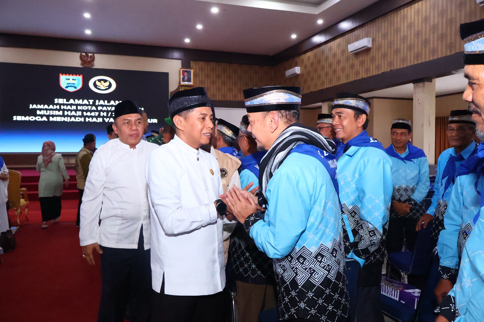 PAYAKUMBUH, CARAPANDANG - Ketua DPRD Kota Payakumbuh, Wirman Putra, menghadiri prosesi pelepasan 175 Jamaah Calon Haji (JCH) asal Kota Payakumbuh untuk musim haji 1447 H/2026 M. Kegiatan berlangsung di Aula Josrizal Zain, Balai Kota Payakumbuh, Kamis (30/04/2026).