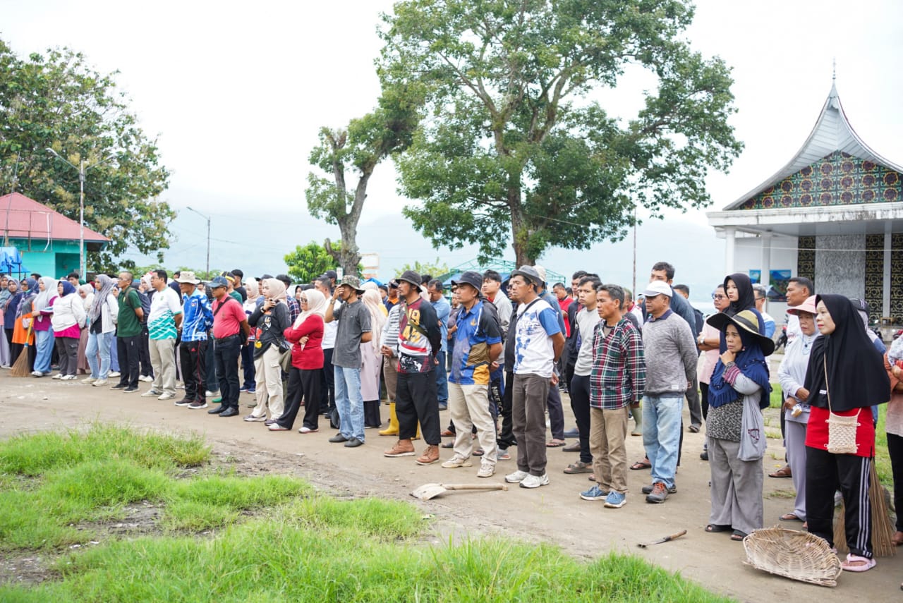 Apel berlangsung khidmat, diikuti oleh Sekretaris Daerah, Staf Ahli Bupati, Asisten, Kepala OPD, ASN, serta THL dari berbagai dinas. Setelah apel, seluruh peserta langsung bergerak melakukan bersih-bersih area pesisir danau sebagai bentuk kepedulian terhadap lingkungan dan pemulihan daerah wisata pasca bencana.