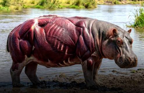 Struktur tubuh Hippopotamus justru didominasi oleh jaringan otot yang sangat padat, bukan lapisan lemak seperti yang sering diasumsikan secara visual.