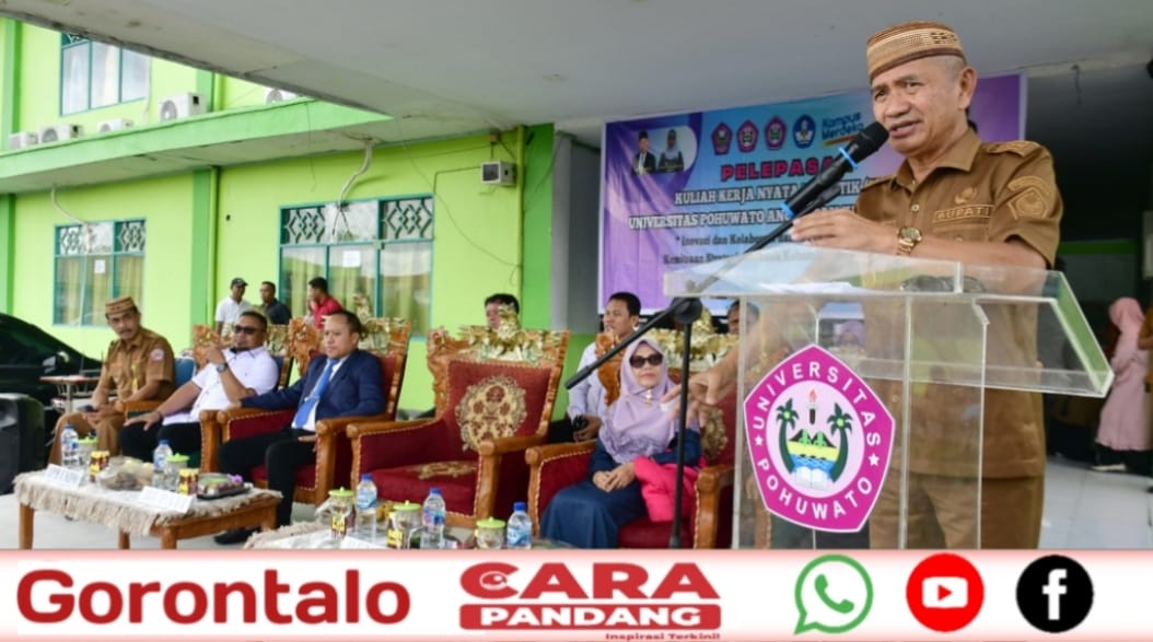 POHUWATO, CARAPANDANG - Secara resmi, Bupati Pohuwato, Saipul A. Mbuinga, melepas peserta Kuliah Kerja Nyata (KKN) Tematik Universitas Pohuwato (Unipo) Angkatan IV, Tahun 2025, di pelataran Universitas Pohuwato, Senin (20/1/2025).