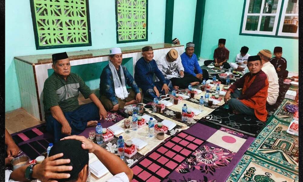 Saipul A. Mbuinga turut serta dalam kegiatan buka puasa dan salat Magrib bersama warga di Masjid An-Nida, Desa Sipayo, Kecamatan Paguat, Sabtu, (06/04/2024).