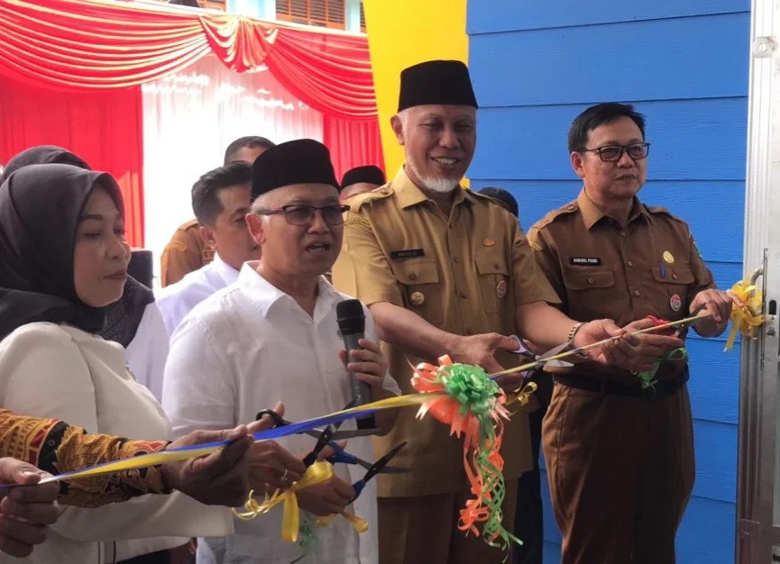 SUMBAR, CARAPANDANG - Gubernur Sumatera Barat (Sumbar), Mahyeldi Ansharullah mendampingi Wakil Menteri Pendidikan Dasar dan Menengah (Wamendikdasmen) RI, Atip Latipulhayat, meresmikan pemakaian fasilitas hasil Program Revitalisasi Satuan Pendidikan Tahun 2025 di SMK Negeri 1 Kota Padang, Senin (5/1/2026).