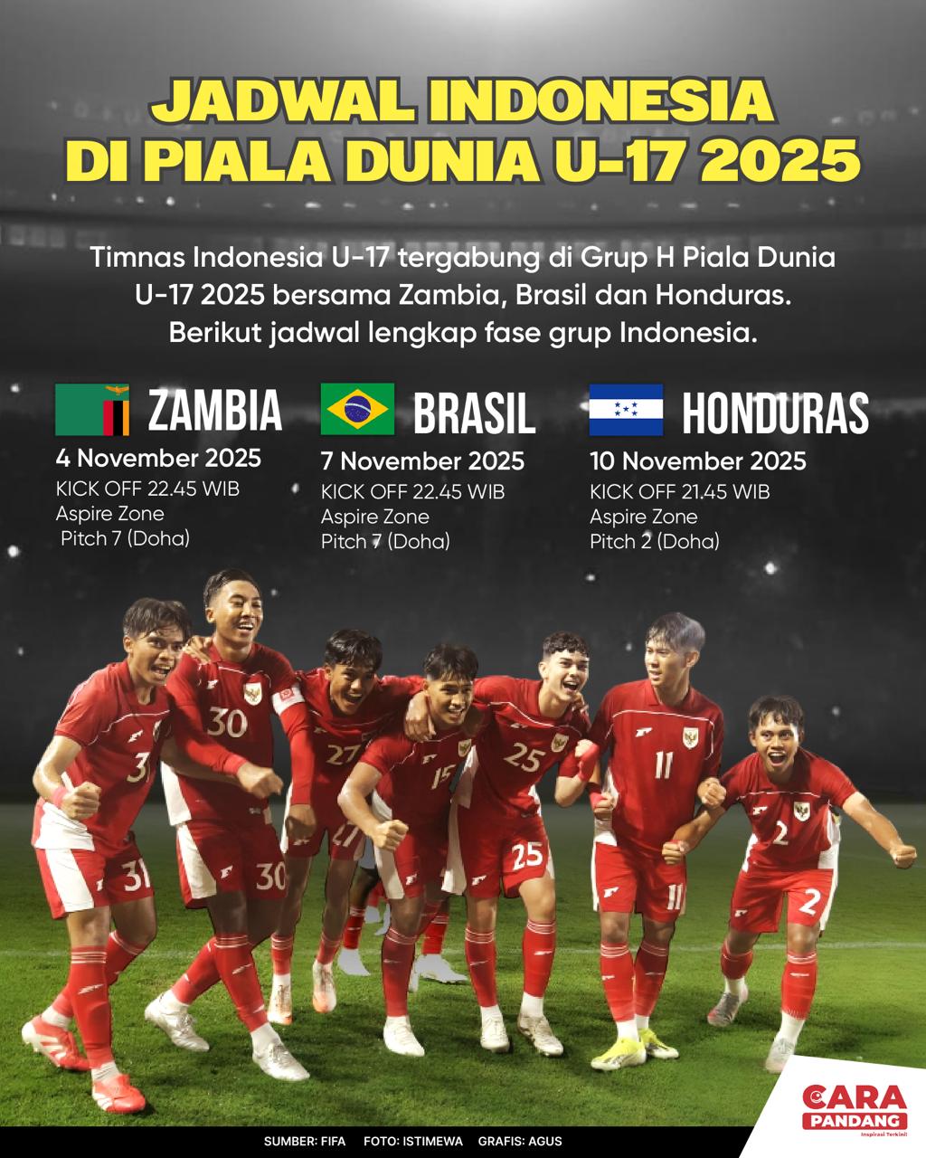 Beranda Infografis Jadwal Indonesia di Piala Dunia U17 2025 Infografis Jadwal Indonesia di Piala Dunia U17 2025 Penulis Amira Izzati - 29 Oktober 2025 13:24 0 Jadwal Indonesia di Piala Dunia U17 2025 Tags Berita Sebelumnya Payakumbuh Capai Indeks Elektronifikasi Transaksi 96,3 Persen, Lampaui Rata-Rata Nasional Berita Berikutnya SD Taman Siswa Jetis Yogyakarta Bersyukur Rasakan Manfaat Program Revitalisasi LEAVE A REPLY Cancel reply Comment: Please enter your comment! Name:* Please enter your name here Email:* You have entered an incorrect email address! Please enter your email address here Website: Save my name, email, and website in this browser for the next time I comment. Berita Teratas Perlahan Prabowo Lepas dari Bayang-bayang Jokowi Kereta Api di Daop 7 Ikut Terdampak Akibat Banjir di Semarang Muhammadiyah Masuk Dalam 10 Organisasi Agama Terkaya di Dunia Korut Uji Coba Rudal Jelajah Jelang Kunjungan Trump ke Korsel Purbaya Ancam Pelaku Import Pakaian Bekas Ilegal Berita Terkait Berita Terkait Whoosh Indonesia vs Land Brigde Arab Saudi Maliq - 27 Oktober 2025 12:18 Muhammadiyah Masuk Dalam 10 Organisasi Agama Terkaya di Dunia Maliq - 24 Oktober 2025 11:12 Mewujudkan Pendidikan Berkualitas Maliq - 24 Oktober 2025 07:38 Whoosh, Duri dalam Daging Keuangan Maliq - 15 Oktober 2025 20:08