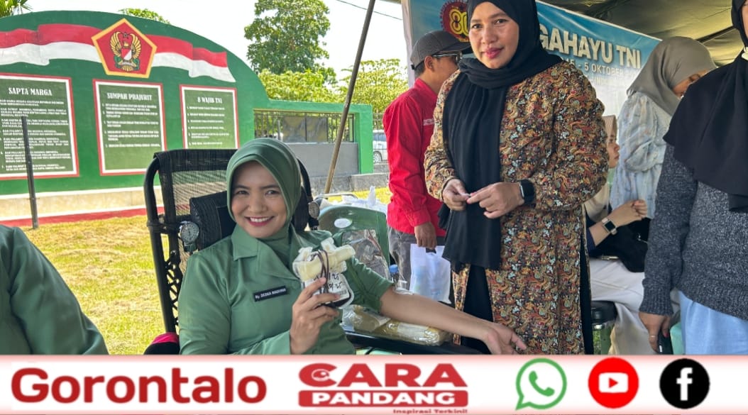 POHUWATO, CARAPANDANG - Kodim 1313/Pohuwato menggelar bakti kesehatan dan bazar murah dalam rangka memperingati Hari Ulang Tahun (HUT) ke-80 Tentara Nasional Indonesia (TNI), di Lapangan Upacara Kodim 1313/Pohuwato, Desa Pohuwato Timur, Kecamatan Marisa, Minggu (21/09/2025).