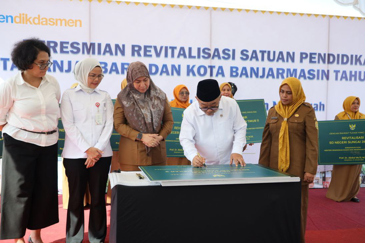 CARAPANDANG.COM- Menteri Pendidikan Dasar dan Menengah (Mendikdasmen) Abdul Mu’ti meresmikan sebanyak 14 sekolah di Kota Banjarbaru dan Banjarmasin, Provinsi Kalimantan Selatan sebagai hasil dari program revitalisasi satuan pendidikan periode 2025.