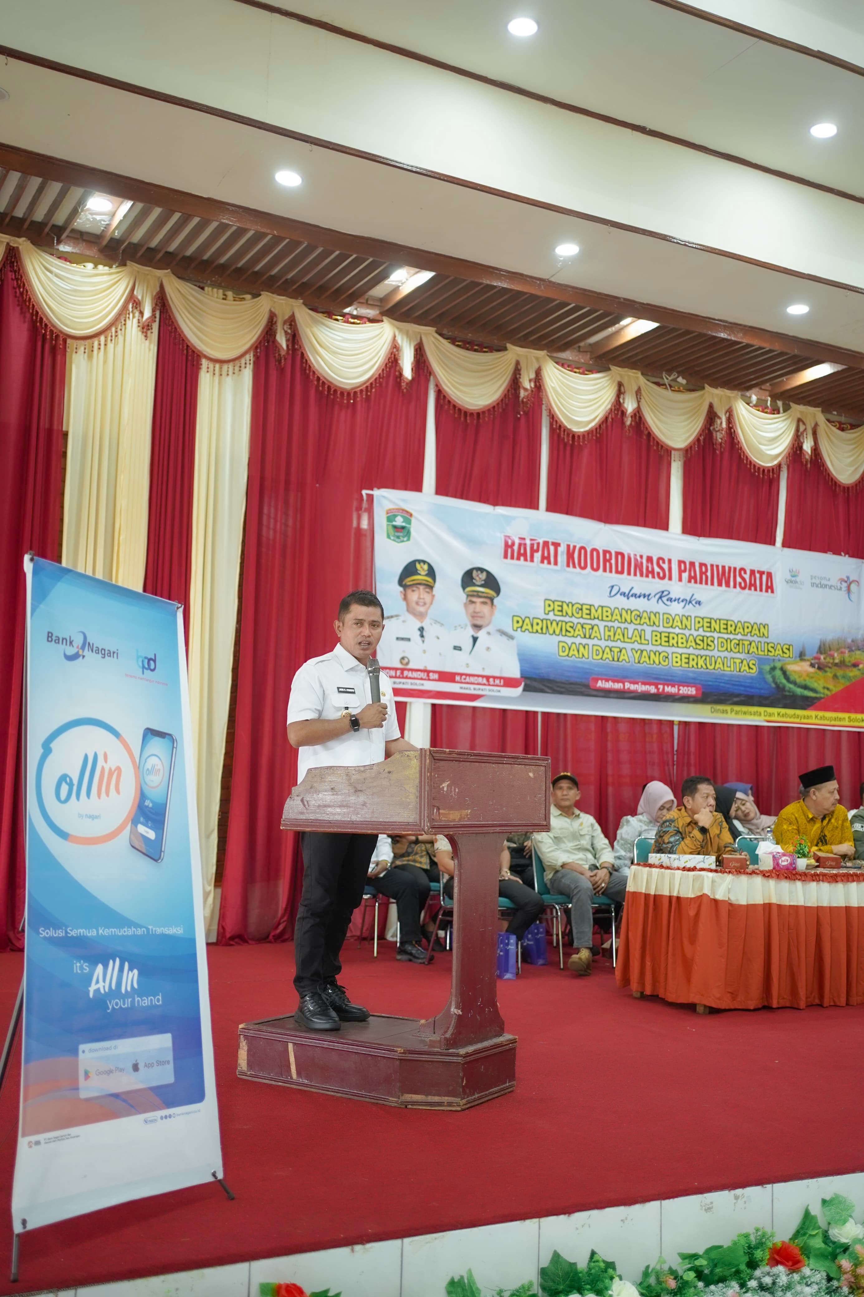 Dalam sambutannya, Bupati Solok Jon Firman Pandu menekankan pentingnya menjadikan pariwisata sebagai sektor unggulan daerah, yang tidak hanya mengedepankan keindahan alam dan budaya lokal, tetapi juga mampu memenuhi kebutuhan wisatawan muslim melalui penerapan prinsip-prinsip wisata halal.