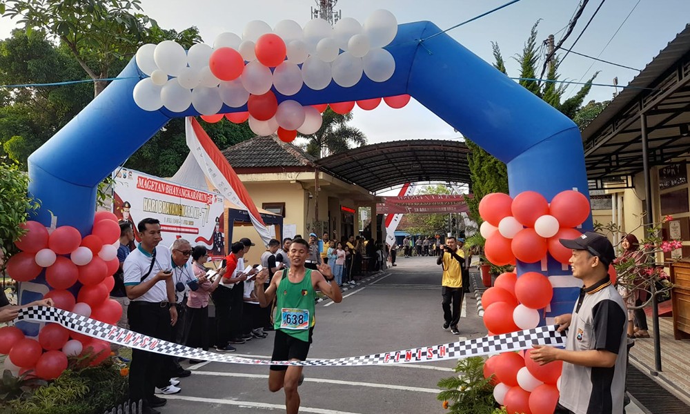 CARAPANDANG - Bhayangkara Magetan Run yang digelar dalam rangka peringatan HUT Bhayangkara ke-77 pada Minggu (25/06/2023) berhasil dikuasai oleh salah satu prajurit Sriti.