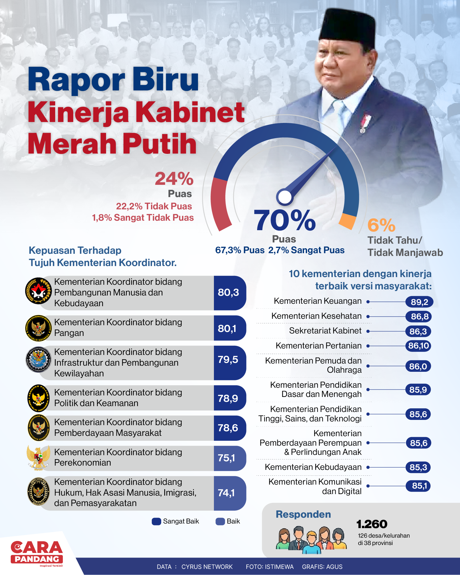 Beranda Infografis Rapor Biru Kinerja Kabinet Merah Putih Infografis Rapor Biru Kinerja Kabinet Merah Putih Penulis Amira Izzati - 15 April 2026 14:46 0 Rapor Biru Kinerja Kabinet Merah Putih Tags Berita Sebelumnya CENTCOM Sebut Pasukan AS Sepenuhnya Hentikan Perdagangan Maritim Menuju Iran Selama 36 Jam Berita Berikutnya Harga LPG 12 Kg Naik 18,75 Persen, di Papua Capai Rp.285.000 per-Tabung LEAVE A REPLY Cancel reply Comment: Please enter your comment! Name:* Please enter your name here Email:* You have entered an incorrect email address! Please enter your email address here Website: Save my name, email, and website in this browser for the next time I comment. Berita Teratas Cara Tidur Ala Rasulullah, Bagus untuk Kesehatan! Mengunjungi Museum Lokananta di Surakarta, Jawa Tengah PBB: Timur Tengah Kian Memburuk dengan Kapasitas Layanan yang Tertekan Berat Life Style Sehat ala Muhammad Rasulullah SAW Cerita Seru dr Gia Pratama yang lagi Viral: Tangani Pasien Rahim Copot Berita Terkait Berita Terkait Kolaborasi Tingkatkan Kemampuan Literasi dan Numerasi Siswa Zoel Rachman - 16 April 2026 11:26 Program Bug Bounty 2026, Perkuat Ketahanan Siber Pendidikan Indonesia Maliq - 15 April 2026 21:44 Makin Ugal-ugalan Kini BGN Gelontorkan 6,9 Miliar untuk Belanja Kaos Kaki Zoel Rachman - 13 April 2026 07:53 Wajah Baru PP Tunas: Garda Terdepan Perlindungan Anak Indonesia Zoel Rachman - 31 Maret 2026 09:42