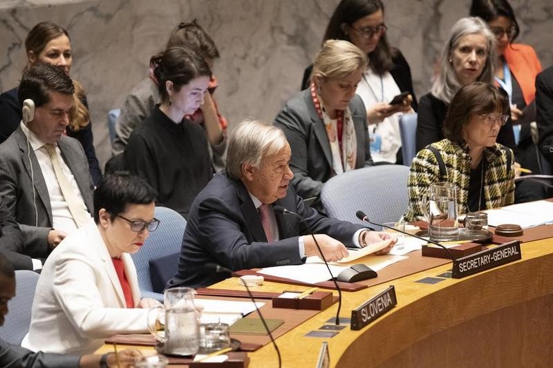 Sekretaris Jenderal Perserikatan Bangsa-Bangsa (PBB) Antonio Guterres berbicara dalam sebuah rapat Dewan Keamanan PBB di markas besar PBB di New York pada 22 Juli 2025. (Carapandang/Xinhua/UN Photo/Eskinder Debebe)