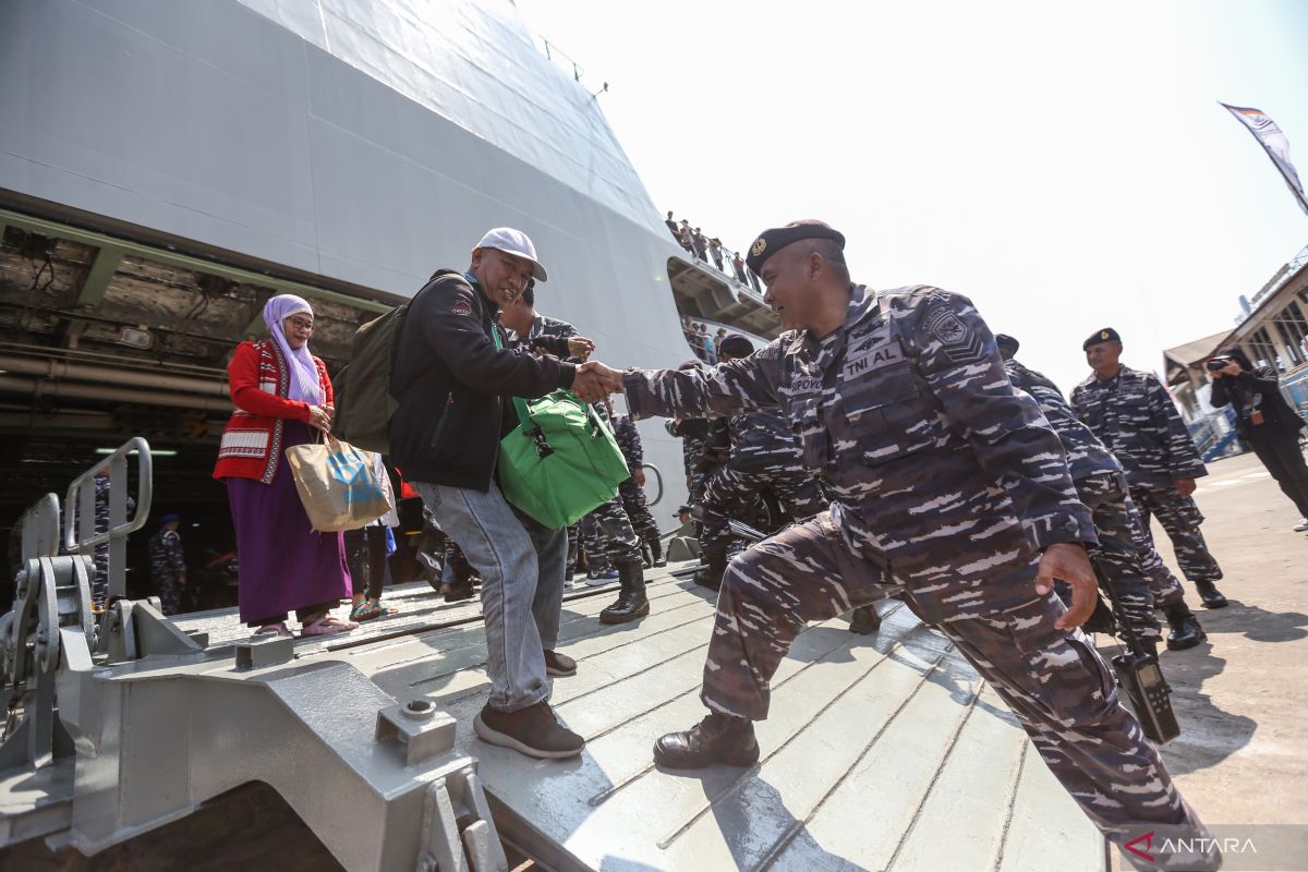 CARAPANDANG.COM- TNI Angkatan Laut memberangkatkan sekitar 1.200 pemudik tujuan Bangka Belitung menggunakan Kapal Perang Republik Indonesia (KRI) Semarang-594 dalam program mudik gratis lintas pulau menjelang Hari Raya Idul Fitri 1447 Hijriah.