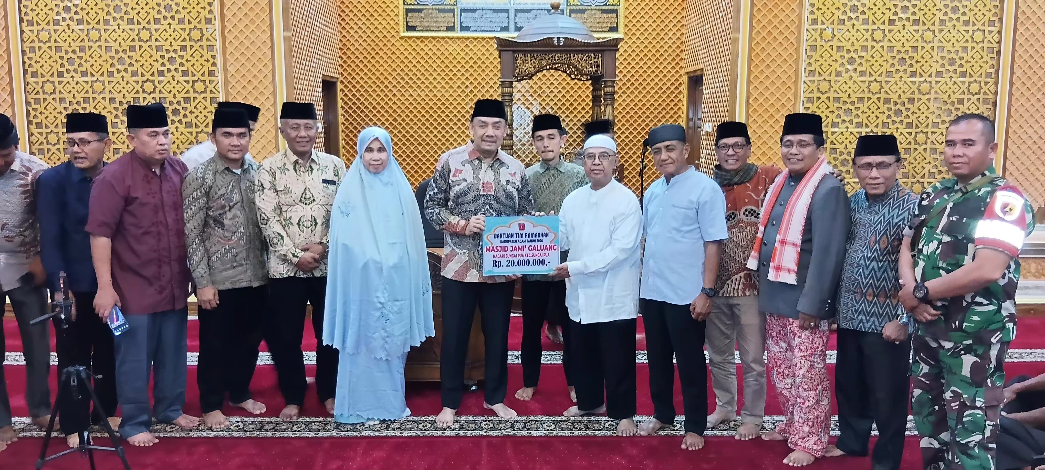 SUMBAR, CARAPANDANG - Tim Safari Ramadhan (TSR) Pemerintah Kabupaten Agam yang dipimpin Wakil Bupati Agam, Iqbal, mengunjungi Masjid Jami Galuang, Nagari Sungai Pua, Kecamatan Sungai Pua, Sabtu (28/02/2026).