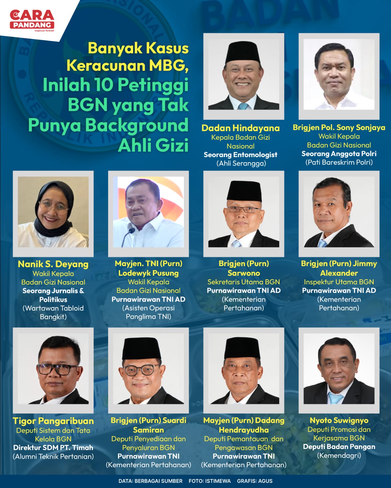 Beranda Infografis 10 Petinggi BGN Infografis 10 Petinggi BGN Makan Bergizi Gratis. Penulis Edo Soeryadi - 30 September 2025 05:58 0 CARAPANDANG.COM - Makan Bergizi Gratis. Tags Infografik MBG BGN Berita Sebelumnya Hari Sungai Sedunia: Menilik Peran Penting Sungai bagi Masyarakat Myanmar Berita Berikutnya Emas Menguat 0,02% Posisi US$4.208,49 Per Troy Ons LEAVE A REPLY Cancel reply Comment: Please enter your comment! Name:* Please enter your name here Email:* You have entered an incorrect email address! Please enter your email address here Website: Save my name, email, and website in this browser for the next time I comment. Berita Teratas Dua Tahun Perang Gaza: Fakta dalam Statistik KPK Diminta Tindak Tegas Penyimpangan Dana Negara Studi: Bantuan Militer AS ke Israel Lampaui 21 Miliar Dolar AS sejak Konflik Gaza Meletus Eder Militao Kembali Merumput Setelah Cedera Panjang 'One-Punch Man' Season 3 Resmi Tayang Hari Ini Berita Terkait Berita Terkait Whoosh, Duri dalam Daging Keuangan Maliq - 15 Oktober 2025 20:08 Akhir Kisah Kementerian BUMN Maliq - 13 Oktober 2025 12:48 Mengenal Sekolah Garuda untuk Siswa Berprestasi Maliq - 11 Oktober 2025 10:31 20 Poin Usulan Trump di Gaza Maliq - 10 Oktober 2025 11:13