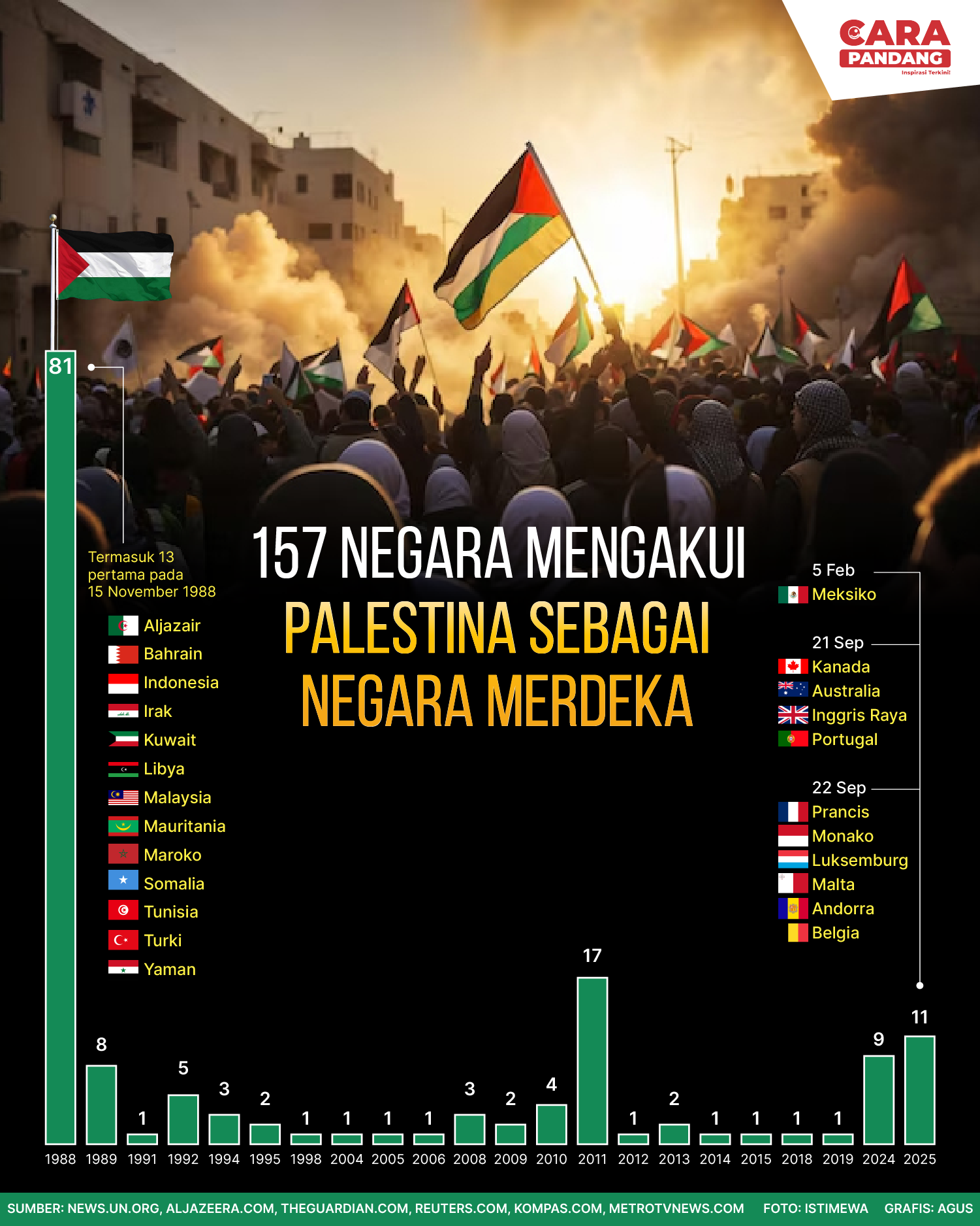 Beranda Infografis 157 Negara Akui Palestina Negara Merdeka Infografis 157 Negara Akui Palestina Negara Merdeka 157 Negara Akui Palestina Negara Merdeka Penulis Amira Izzati - 23 September 2025 21:50 0 157 Negara Akui Palestina Negara Merdeka Tags Berita Sebelumnya NasDem: Terlalu Dini Bicara Prabowo-Gibran 2 Periode, Pemilu Masih Lama Berita Berikutnya Cetak Sejarah Di Piala Dunia, Nova Arianto: Terimakasih Tuhan LEAVE A REPLY Cancel reply Comment: Please enter your comment! Name:* Please enter your name here Email:* You have entered an incorrect email address! Please enter your email address here Website: Save my name, email, and website in this browser for the next time I comment. Berita Teratas Kiat Mengolah Makanan yang Mempengaruhi Kalori Fenomena Supermoon 5 November 2025 Kemendikdasmen Akan Tindaklanjuti Dugaan Pelanggaran saat Pelaksanaan TKA Potret Warga Beri Penghormatan Terakhir bagi Almarhum Sri Susuhunan Pakubuwono XIII Wamendikdasmen Fajar Tinjau Penggunaan Papan Interaktif Digital di Bogor Berita Terkait Berita Terkait 10 Tokoh Ditetapkan sebagai Pahlawan Nasional Maliq - 11 November 2025 10:18 Ignatius Jonan Menuju Menhub? Maliq - 07 November 2025 14:02 Hasil Sidang MKD DPR RI Maliq - 06 November 2025 11:34 Biaya Haji 2026 Turun Maliq - 06 November 2025 11:32