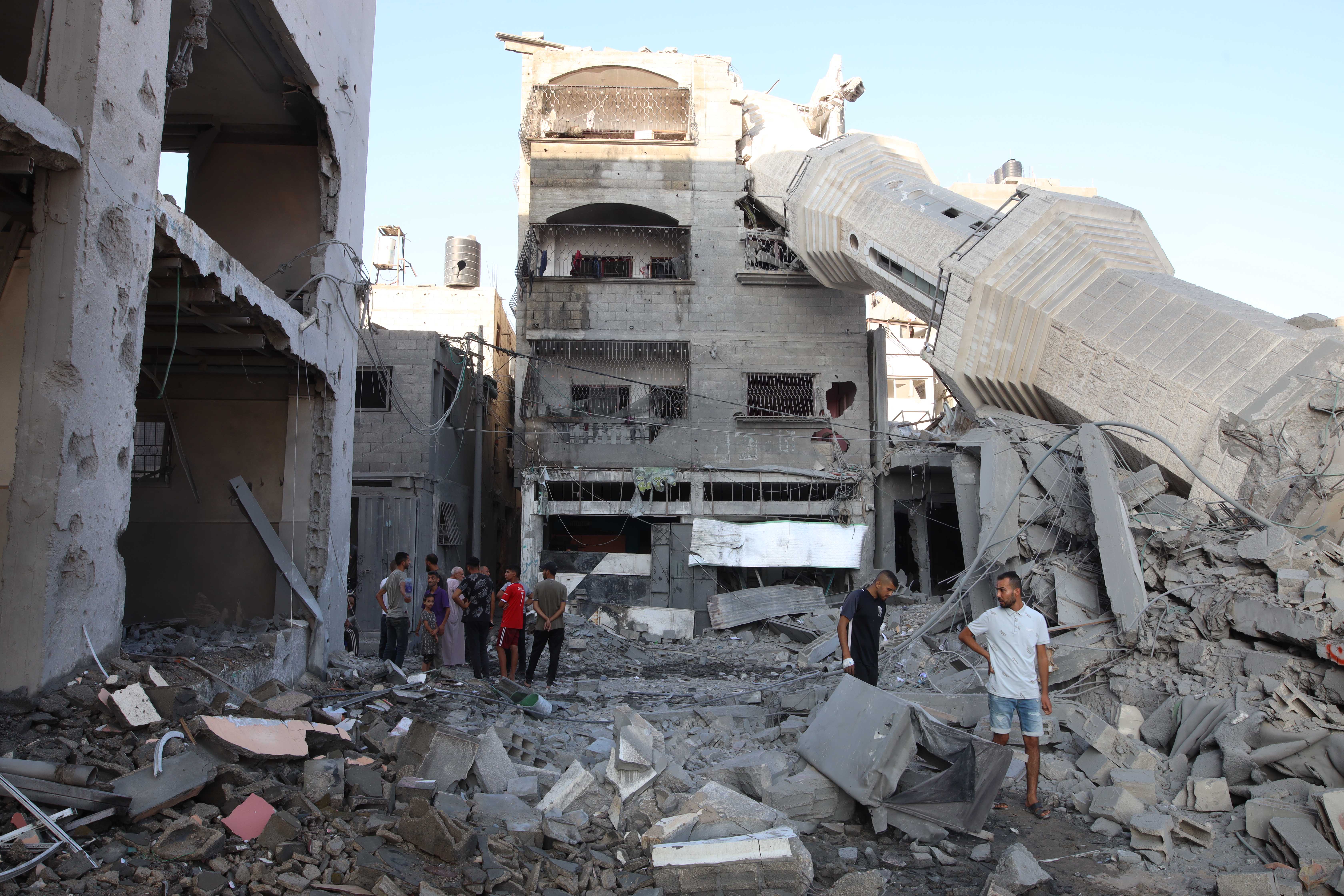 CARAPANDANG.COM, GAZA, 18 Juli - Orang-orang saling berpelukan dan berkumpul di luar bangunan yang hancur untuk menguatkan saat pemakaman di kamp pengungsi Nuseirat di Gaza tengah pada 17 Juli 2024. Dalam 24 jam terakhir, militer Israel menewaskan 81 orang dan melukai 198 lainnya, menambah total korban tewas menjadi 38.794 dan luka-luka menjadi 89.364 sejak konflik Palestina-Israel pecah pada awal Oktober 2023, kata otoritas kesehatan yang berbasis di Gaza dalam sebuah pernyataan pada Rabu (17/7).