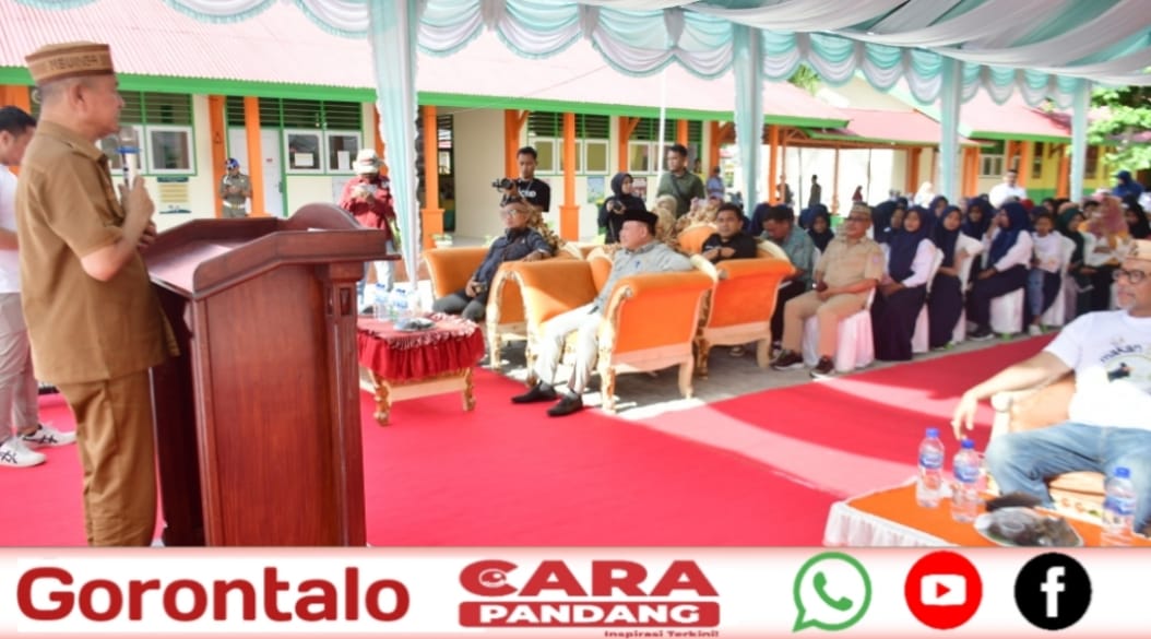 POHUWATO, CARAPANDANG - Launching Program Makan Baik Program Pengembangan dan Pemberdayaan Masyarakat oleh Pani Gold Project (PGP) untuk Sekolah Binaan SD-SMP Satu Atap Desa Hulawa, Kecamatan Buntulia, dilakukan langsung Bupati Pohuwato, Saipul A. Mbuinga, Selasa, (11/02/2025).