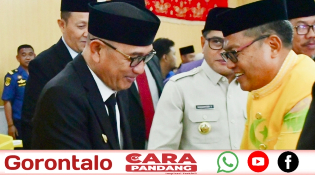 Rapat paripurna yang berlangsung di ruang sidang DPRD Gorontalo Utara tersebut dihadiri Gubernur Gorontalo, Gusnar Ismail, dan dipimpin Ketua DPRD Gorontalo Utara, Dedy Dunggio, didampingi para wakil ketua DPRD.