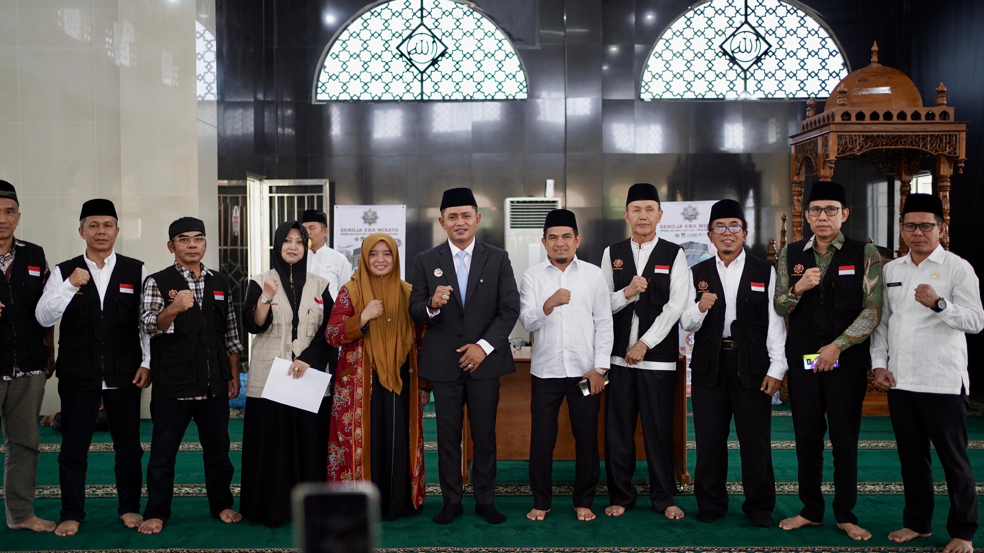 SOLOK, CARAPANDANG - Pemerintah Kabupaten Solok menggelar acara pelepasan mahasiswa asal Kabupaten Solok yang akan melanjutkan pendidikan ke Timur Tengah. Kegiatan ini berlangsung di Masjid Agung Darussallam, Islamic Center Koto Baru, Jumat (15/08/2025), dihadiri langsung oleh Bupati Solok Jon Firman Pandu, Wakil Bupati H. Candra, jajaran Kepala OPD, Kabag Kesra Setda Kab. Solok, Ketua BAZNAS Kabupaten Solok Edwar, serta ASN dan THL lingkup Pemkab Solok.