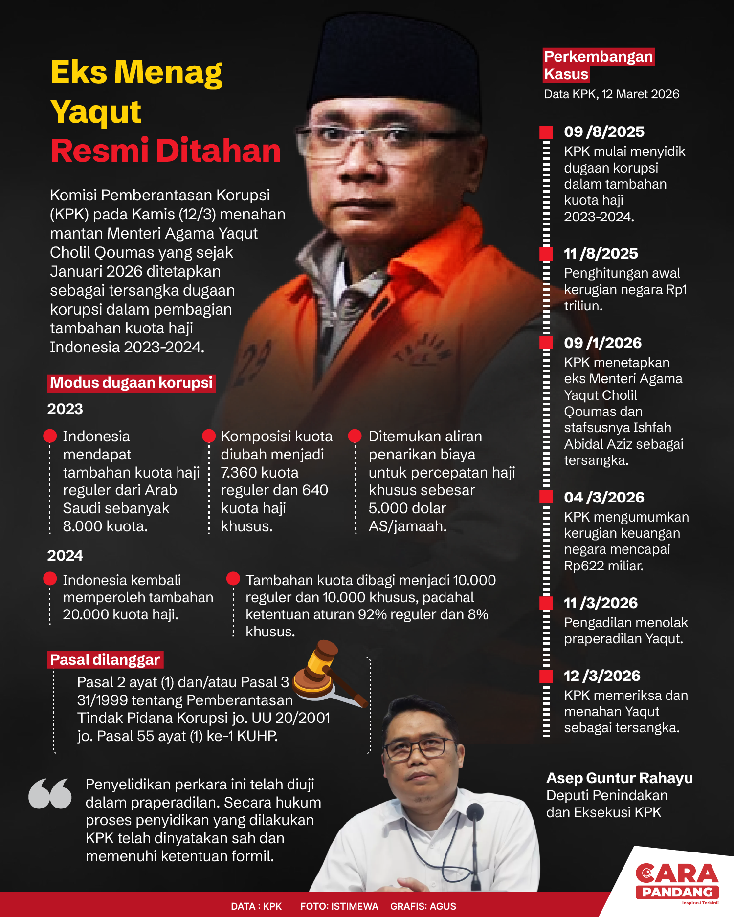 Beranda Infografis Eks Menag Yaqut Resmi Ditahan Infografis Eks Menag Yaqut Resmi Ditahan Penulis Amira Izzati - 17 Maret 2026 03:29 0 Eks Menag Yaqut Resmi Ditahan Tags Berita Sebelumnya Rakor di Pesisir Selatan, Sekdaprov Sumbar Dorong Hilirisasi Produk Unggulan Daerah Berita Berikutnya Iran Tengah Pertimbangkan Pangkalan Militer Inggris Menjadi Target Sah LEAVE A REPLY Cancel reply Comment: Please enter your comment! Name:* Please enter your name here Email:* You have entered an incorrect email address! Please enter your email address here Website: Save my name, email, and website in this browser for the next time I comment. Berita Teratas Kisah Amsal, Videografer Yang Didakwa Kasus Korupsi di Karo Tips Hidup Sehat Agar Bebas Penyakit Salah-Liverpool Akhirnya Berpisah Paman Nabi Abu Lahab :Punya Segalanya Tapi Tak Bermanfaat Untuknya Sayangi Telingamu: Jagalah Selalu Kesehatan Telinga Kita Berita Terkait Berita Terkait Wajah Baru PP Tunas: Garda Terdepan Perlindungan Anak Indonesia Zoel Rachman - 31 Maret 2026 09:42 MBG 5 Hari Sepekan Masih Wacana Maliq - 30 Maret 2026 11:49 Presiden Ingin Semua Kendaraan Dikonversi ke Listrik Maliq - 30 Maret 2026 11:48 Kewaijiban PSE Terhadap Pengguna Anak Maliq - 30 Maret 2026 11:15