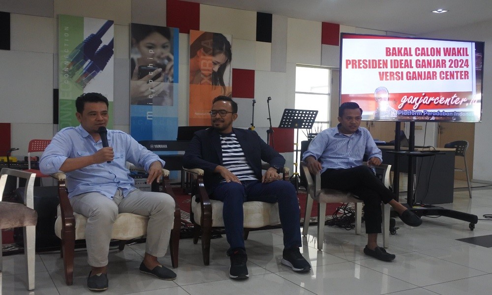 CARAPANDANG - Salah satu organ pemenangan Ganjar Pranowo, Ganjar Center menggelar diskusi bertema "Big Data Analytic Cawapres Ideal Ganjar" pada Sabtu, (14/10) di Gedung CM, Matraman I, Jakarta Timur. Diskusi dihadiri oleh Kornas Ganjar Center, Poempida Hidayatullah dan Analis Cakra Data, Indon Novo sebagai pemateri.