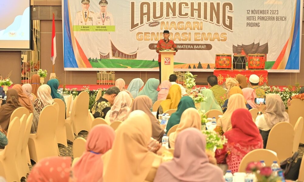 Program Nagari Generasi Emas sendiri, sambung Gubernur, diyakini dapat membawa perubahan besar, melalui berbagai upaya agar anak-anak Sumbar dapat tumbuh sehat, mandiri, dan inovatif. Sebab, Indonesia memiliki modal positif yang besar dalam menyongsong tahun 2045, yakni jumlah penduduk berusia produktif yang dominan.