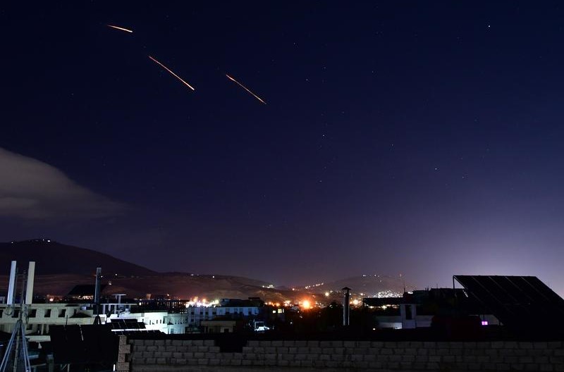 Proyektil-proyektil yang diyakini sebagai rudal Iran terlihat di langit Damaskus, Suriah, pada 1 Oktober 2024. Militer Israel mengatakan dalam sebuah pernyataan pada 1 Oktober 2024 bahwa Iran telah menembakkan sekitar 100 rudal ke arah Yerusalem dan Israel pada malam hari. (Xinhua/Ammar Safarjalani)