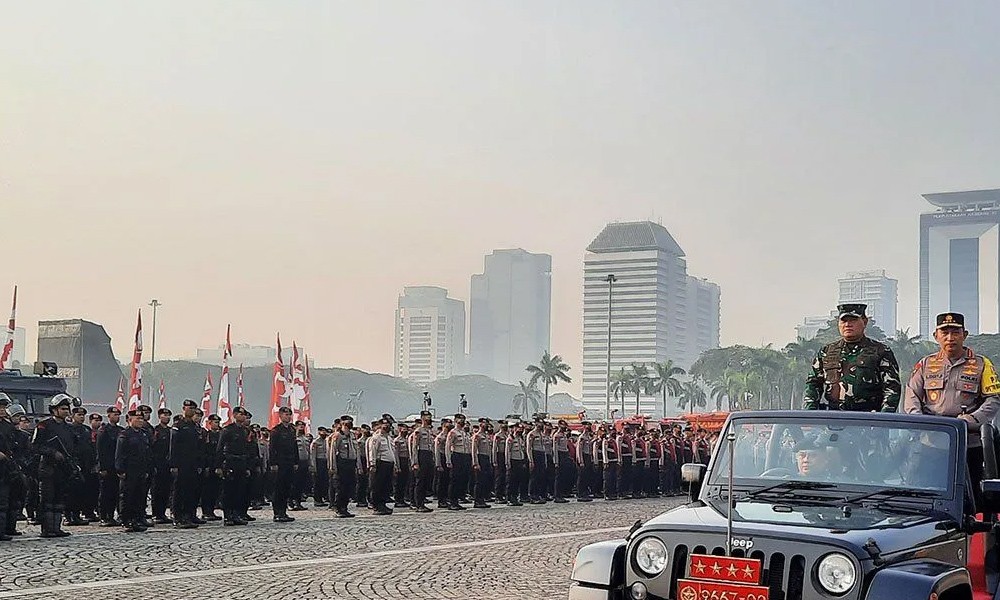 CARAPANDANG - Kapolri Jenderal Pol. Listyo Sigit Prabowo dan Panglima TNI Laksamana TNI Yudo Margono memimpin Apel Gelar Pasukan Pengamanan Konferensi Tingkat Tinggi (KTT) Ke-43 ASEAN di Silang Monas, Jakarta, Jumat, untuk mengecek kesiapan pengamanan agenda internasional itu.