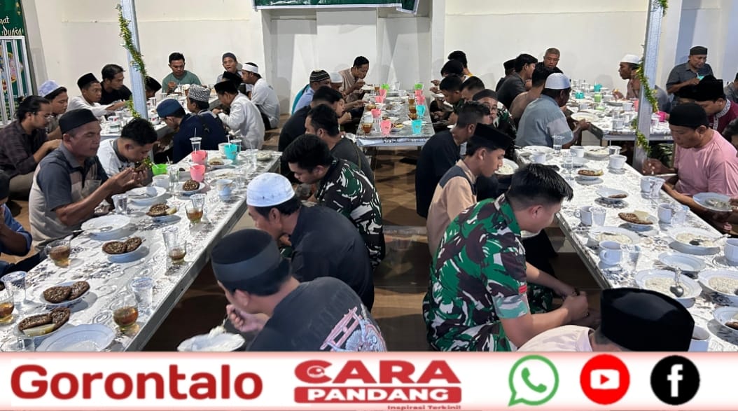 POHUWATO, CARAPANDANG - Dalam rangka mengisi Bulan Suci Ramadhan 1447 H/2026 M, jajaran Kodim 1313/Pohuwato menggelar kegiatan buka puasa bersama dengan Ibu-ibu Persit Kartika Chandra Kirana Cabang LXIX Dim 1313/Pohuwato dan jamaah Masjid Agung Baiturahman Pohuwato, Minggu (22/02/2026).