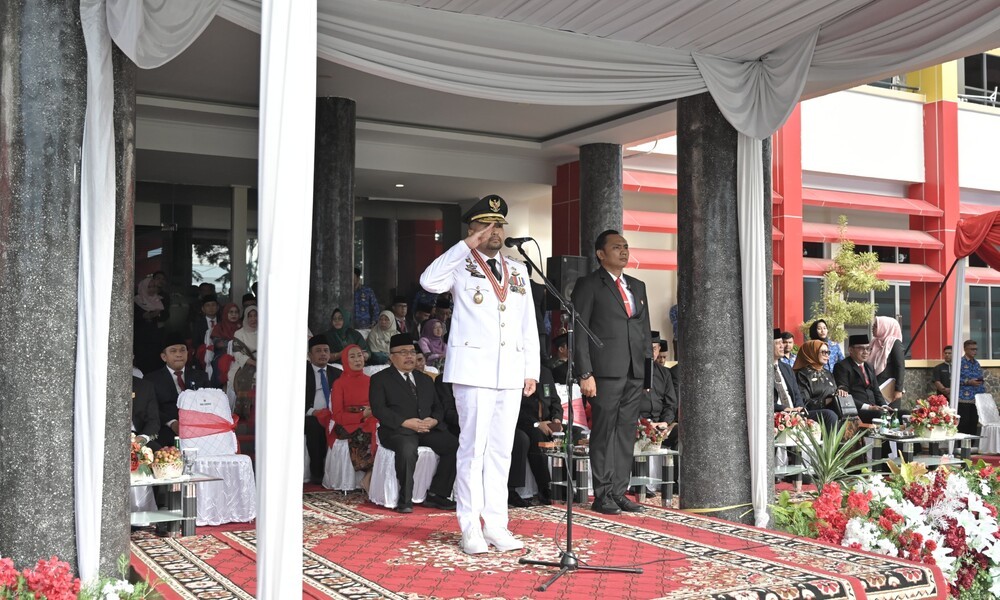 SUMBAR, CARAPANDANG - Wakil Gubernur Sumatera Barat (Wagub Sumbar), Audy Joinaldy, bertindak selaku Pembina Upacara pada Peringatan Hari Pendidikan Nasional (Hardiknas) Tahun 2024 dan Hari Otonomi Daerah XXVIII Tingkat Provinsi yang dipusatkan di Halaman Kantor Gubernur Sumbar, Kamis (02/05/2024)..