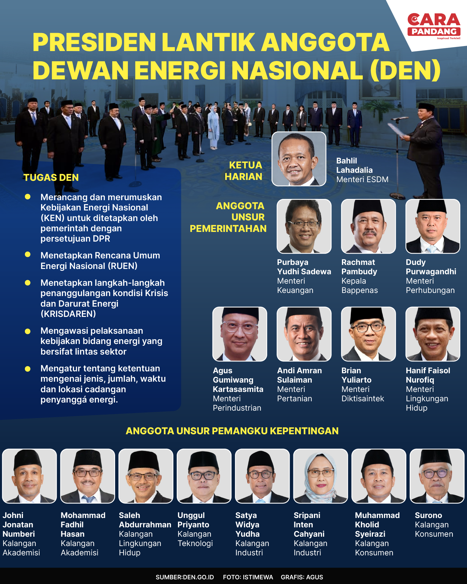 Beranda Infografis Presiden Lantik Anggota DEN Infografis Presiden Lantik Anggota DEN Penulis Amira Izzati - 29 Januari 2026 14:14 0 Presiden Lantik Anggota DEN Tags Berita Sebelumnya Epidemiolog Sarankan Indonesia Tiru Langkah Negara Tetangga Cegah Virus Nipah Berita Berikutnya Iran Tengah Pertimbangkan Pangkalan Militer Inggris Menjadi Target Sah LEAVE A REPLY Cancel reply Comment: Please enter your comment! Name:* Please enter your name here Email:* You have entered an incorrect email address! Please enter your email address here Website: Save my name, email, and website in this browser for the next time I comment. Berita Teratas Kisah Amsal, Videografer Yang Didakwa Kasus Korupsi di Karo Tips Hidup Sehat Agar Bebas Penyakit Salah-Liverpool Akhirnya Berpisah Paman Nabi Abu Lahab :Punya Segalanya Tapi Tak Bermanfaat Untuknya Sayangi Telingamu: Jagalah Selalu Kesehatan Telinga Kita Berita Terkait Berita Terkait Wajah Baru PP Tunas: Garda Terdepan Perlindungan Anak Indonesia Zoel Rachman - 31 Maret 2026 09:42 MBG 5 Hari Sepekan Masih Wacana Maliq - 30 Maret 2026 11:49 Presiden Ingin Semua Kendaraan Dikonversi ke Listrik Maliq - 30 Maret 2026 11:48 Kewaijiban PSE Terhadap Pengguna Anak Maliq - 30 Maret 2026 11:15