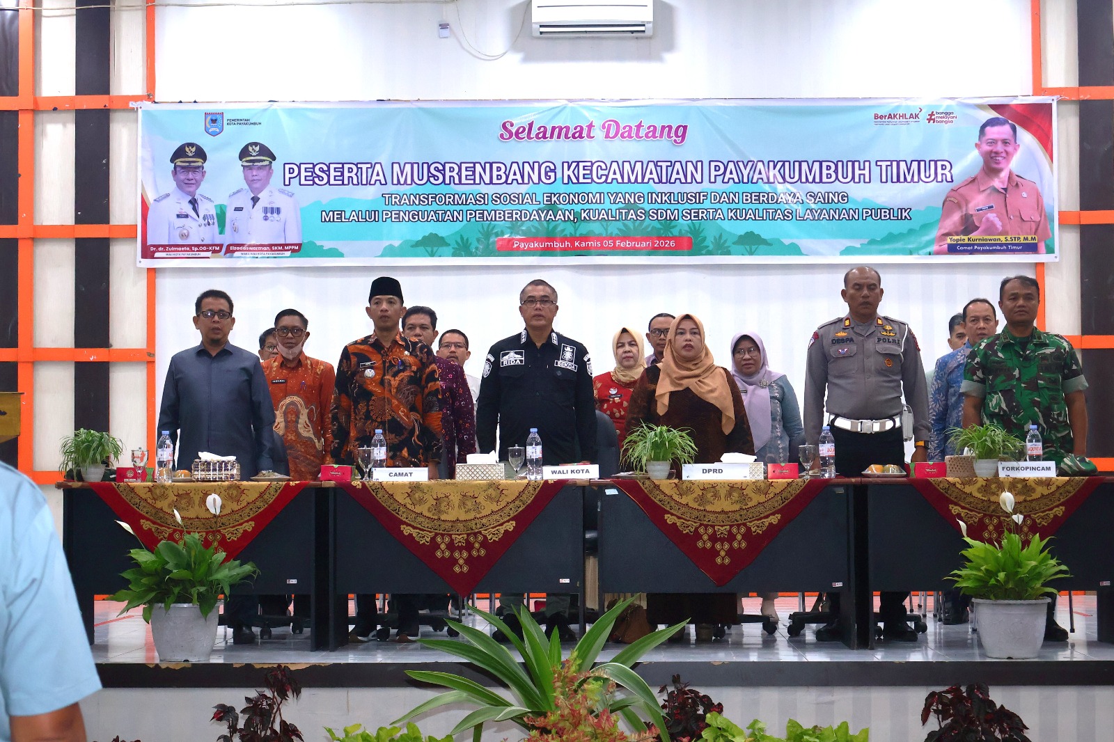 PAYAKUMBUH, CARAPANDANG - Sekretaris Daerah (Sekda) Kota Payakumbuh, Rida Ananda, mewakili Wali Kota Zulmaeta, menghadiri Musyawarah Perencanaan Pembangunan (Musrenbang) Kecamatan Payakumbuh Timur Tahun Perencanaan 2027 yang digelar di Aula SKB Kota Payakumbuh, Kelurahan Padang Alai Bodi, Kamis (05/02/2026).