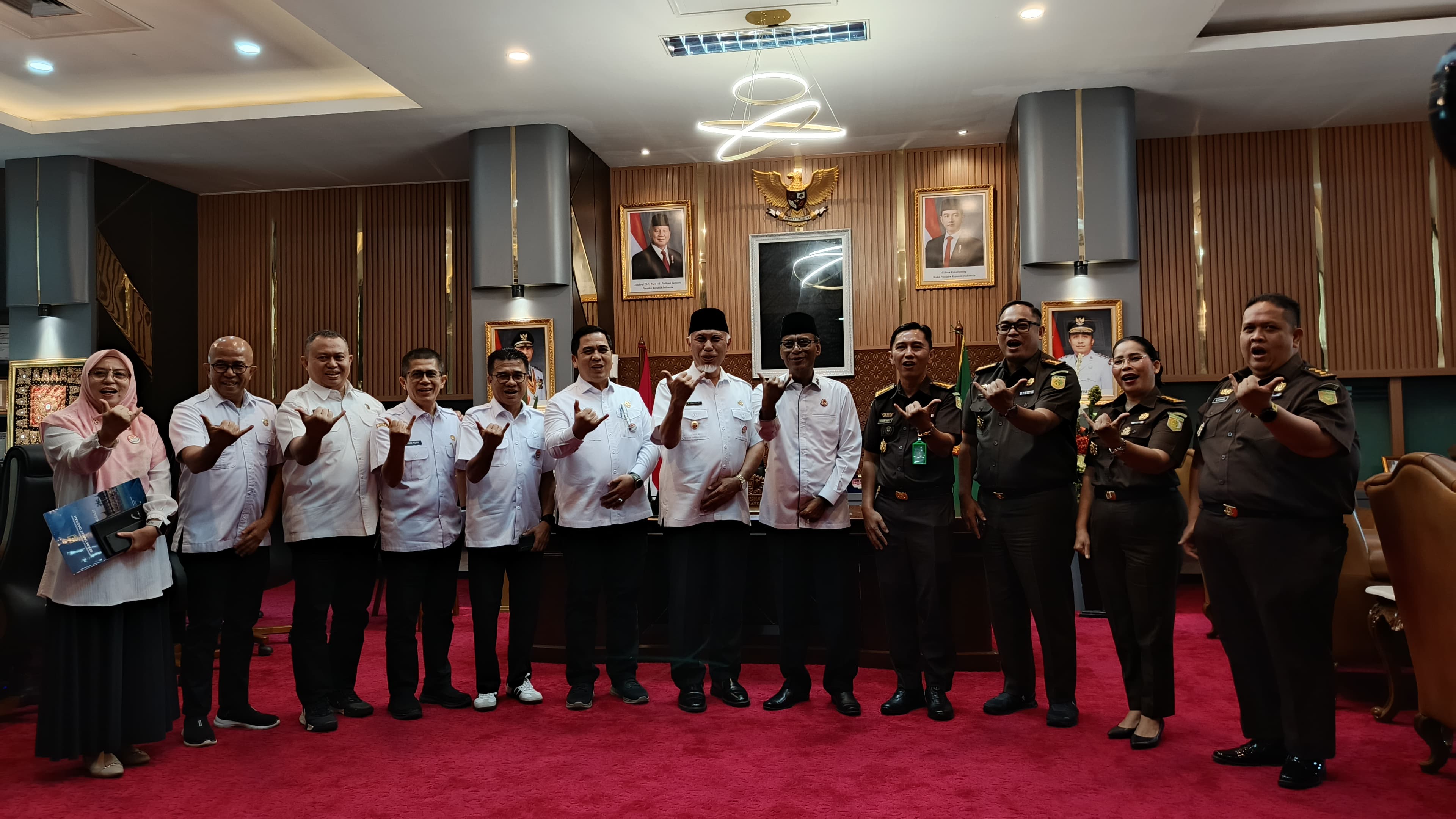 SUMBAR, CARAPANDANG - Gubernur Sumatera Barat, Mahyeldi Ansharullah, menerima kunjungan silaturahmi Kepala Kejaksaan Tinggi (Kajati) Sumbar yang baru, Muhibuddin, di ruang kerjanya, Rabu (5/11/2025). Pertemuan berlangsung hangat dan penuh semangat kerja sama untuk kemajuan daerah.